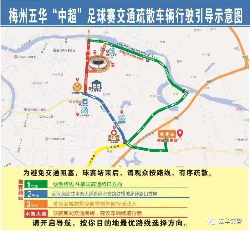 3、在赛事结束后,为缓解奥体中心周边交通压力,21时30分至22时30分,水安路赤沙嘴红绿灯路口、河东增塘红绿灯路口、水寨大道奥园红绿灯路口等3个路口方向来车提前做好绕行路线计划。