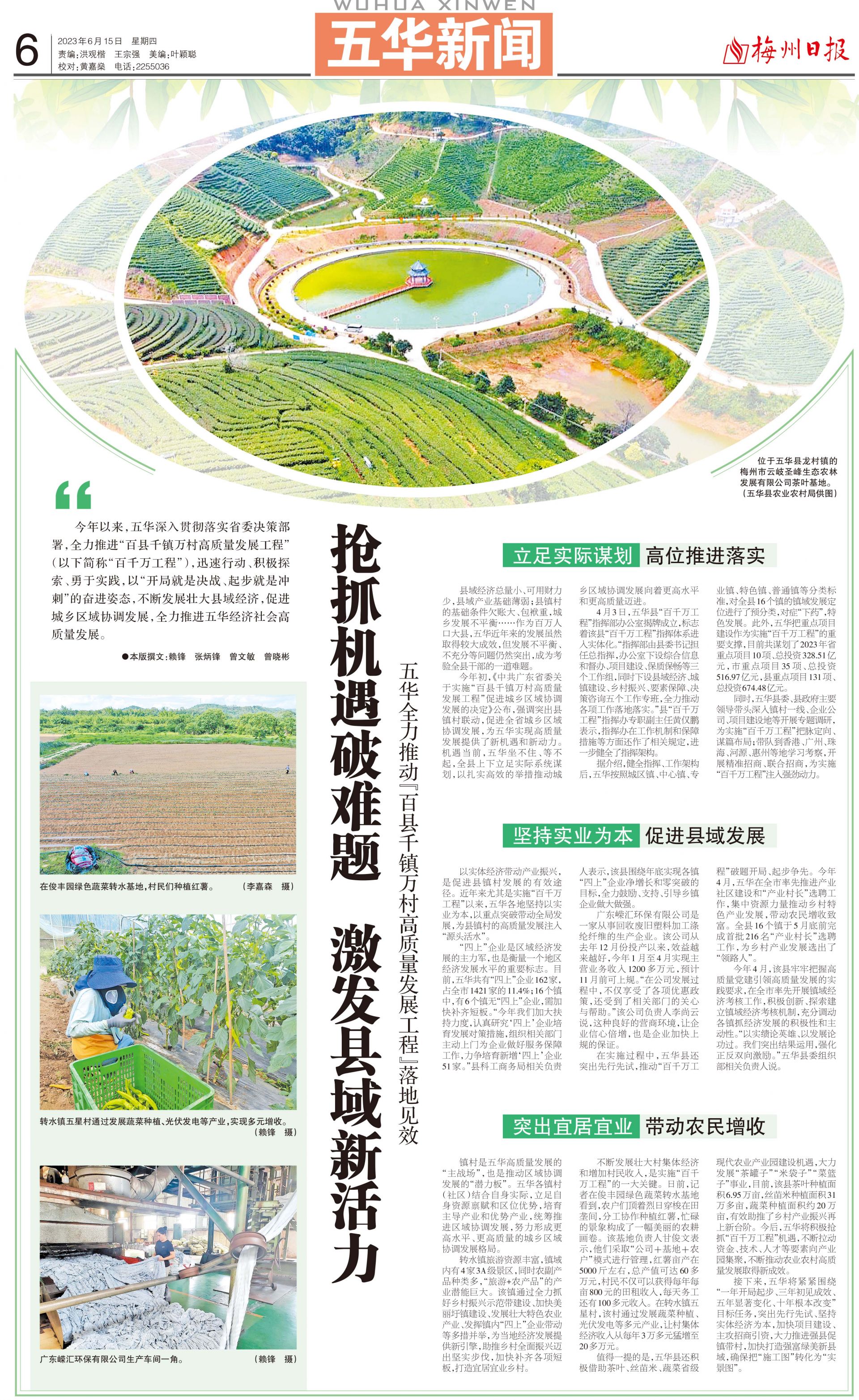 以实体经济带动产业振兴,是促进县镇村发展的有效途径。近年来尤其是实施“百千万工程”以来,五华各地坚持以实业为本,以重点突破带动全局发展,为县镇村的高质量发展注入“源头活水”。