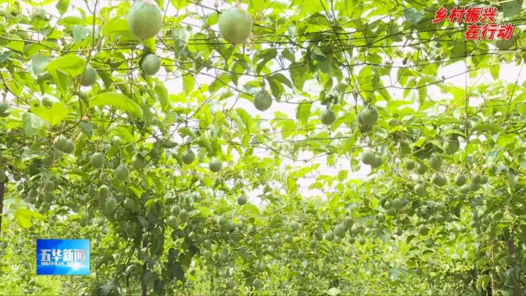 走进五华县彩云百香果专业合作社百香果基地,只见一排排长势喜人的百香果连接成片,一条条百香果藤蔓爬满支架,一个个浑圆饱满、黄绿相间的百香果挂满藤条,散发着淡淡果香,游客们正穿梭于藤架之间采摘甜蜜果实。