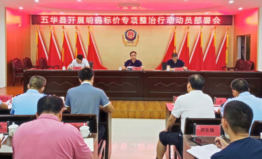 为规范经营者明码标价行为,维护市场价格秩序,营造公平公正的消费环境和良好的营商环境,8月22日上午,五华县在县市场监管局六楼会议室召开全县明码标价专项整治行动动员部署会议。会议由五华县政府副主任薛志东同志主持,邝逸平副县长出席会议并作讲话。五华县科工商务局、县文广旅体局、各镇分管市场监管工作负责同志和综合行政执法队中队长、县市场监管局班子成员和各股室负责人等共计80多人参加了此次会议。