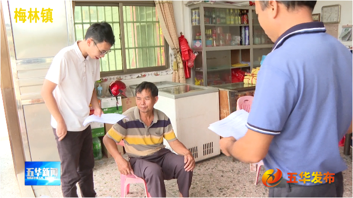 在梅林镇梅林村,村干部们正在逐户入门发放台风防御告知书,提醒广大人民群众要提高警惕,尽量不要外出,注意防范避险。
