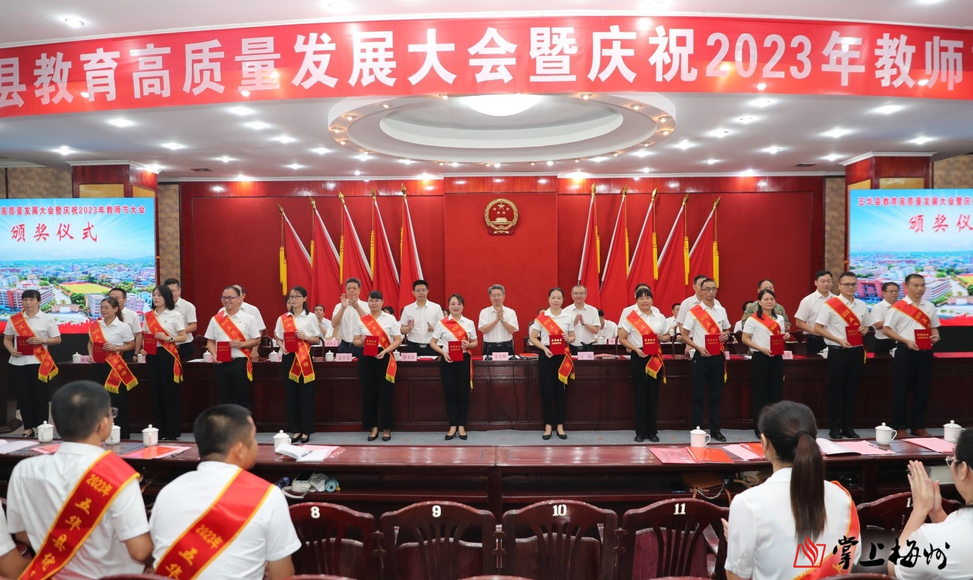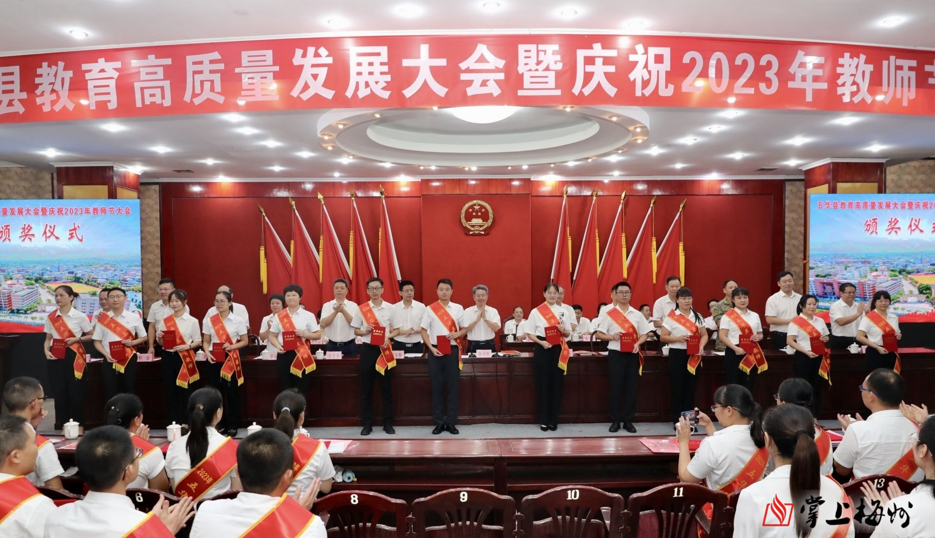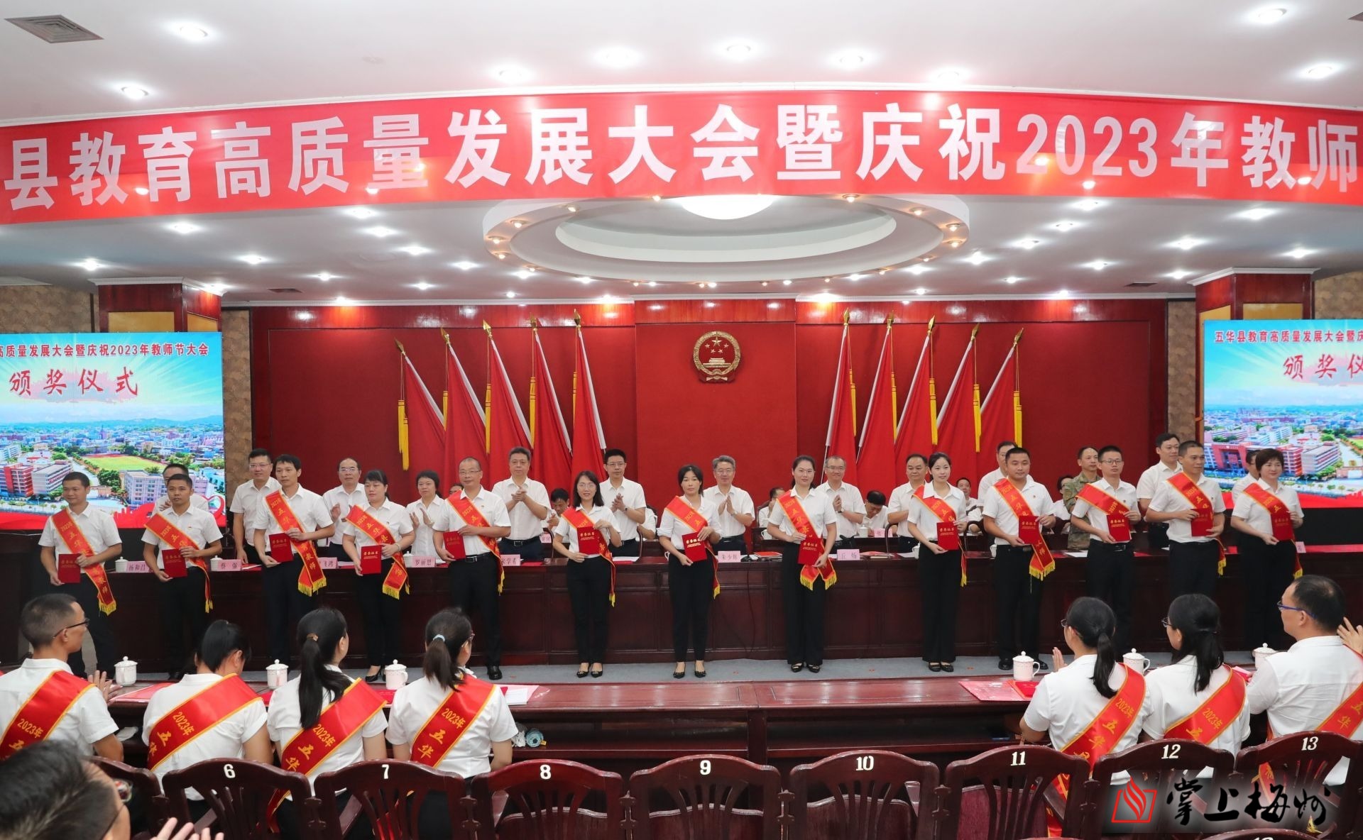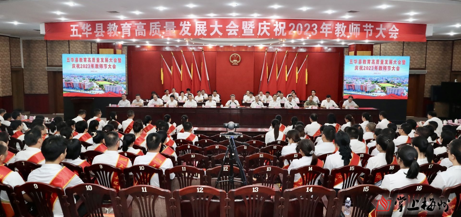 掌上梅州讯 9月8日上午,五华县召开教育高质量发展大会暨庆祝2023年教师节大会。大会表彰了在教育战线作出突出贡献的优秀教师、优秀教育工作者,激励全县广大教师和教育工作者尽展其才、敬业乐业、担当奉献,奋力推动五华教育高质量发展,为推进五华现代化建设提供坚强的人才保障。五华县委书记朱少辉出席会议并讲话,县委副书记、县长丘炀主持会议,相关部门负责同志、部分教师代表等参加大会。