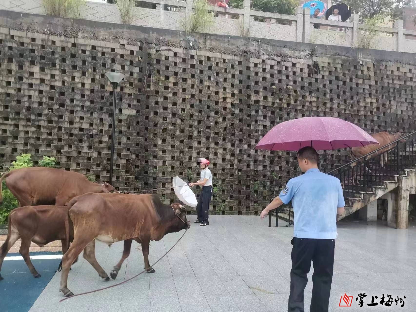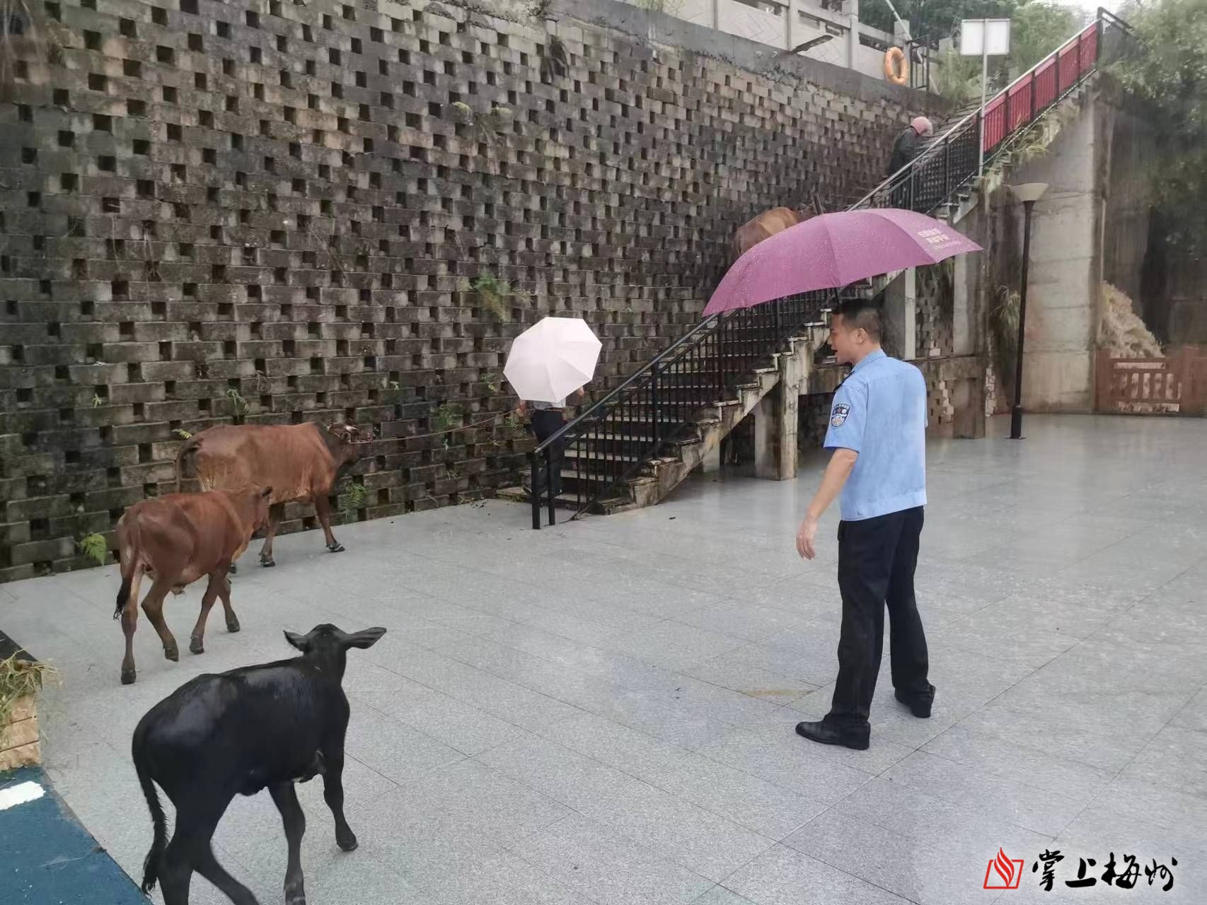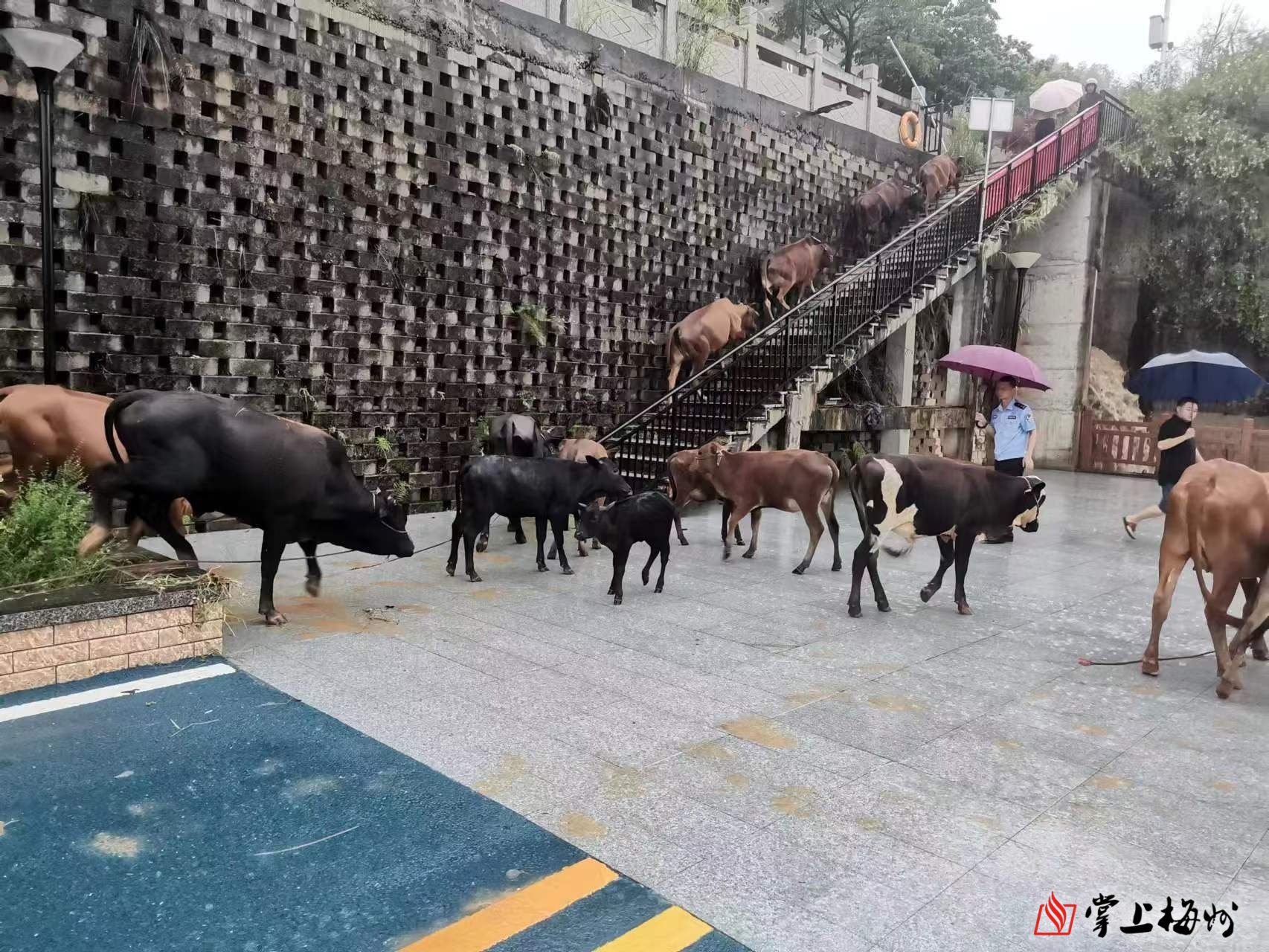 掌上梅州讯 “请问是水寨派出所吗?我放养的20多头牛被困在水寨镇罗湖堤上不来,现在已经被大水冲走两头了,可以过来帮帮我吗?”9月7日上午10点10分,五华县公安局水寨派出所值守民警接到群众曾福谦的报警电话,请求帮助。