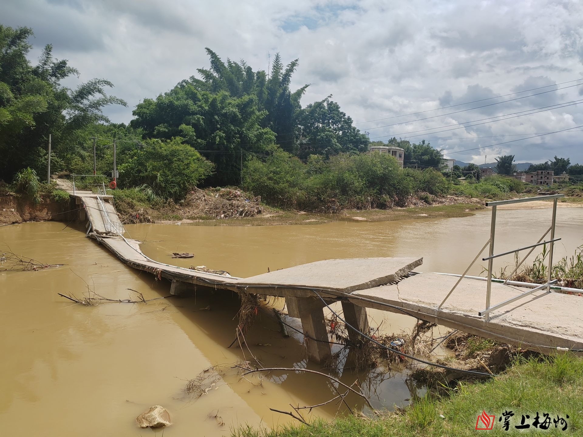 此次强降雨中受损的河东镇平东村开元桥。