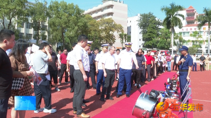 仪式结束后,丘炀一行还到学校体育场观摩政府专职消防队建设成效并进行消防装备互动体验。