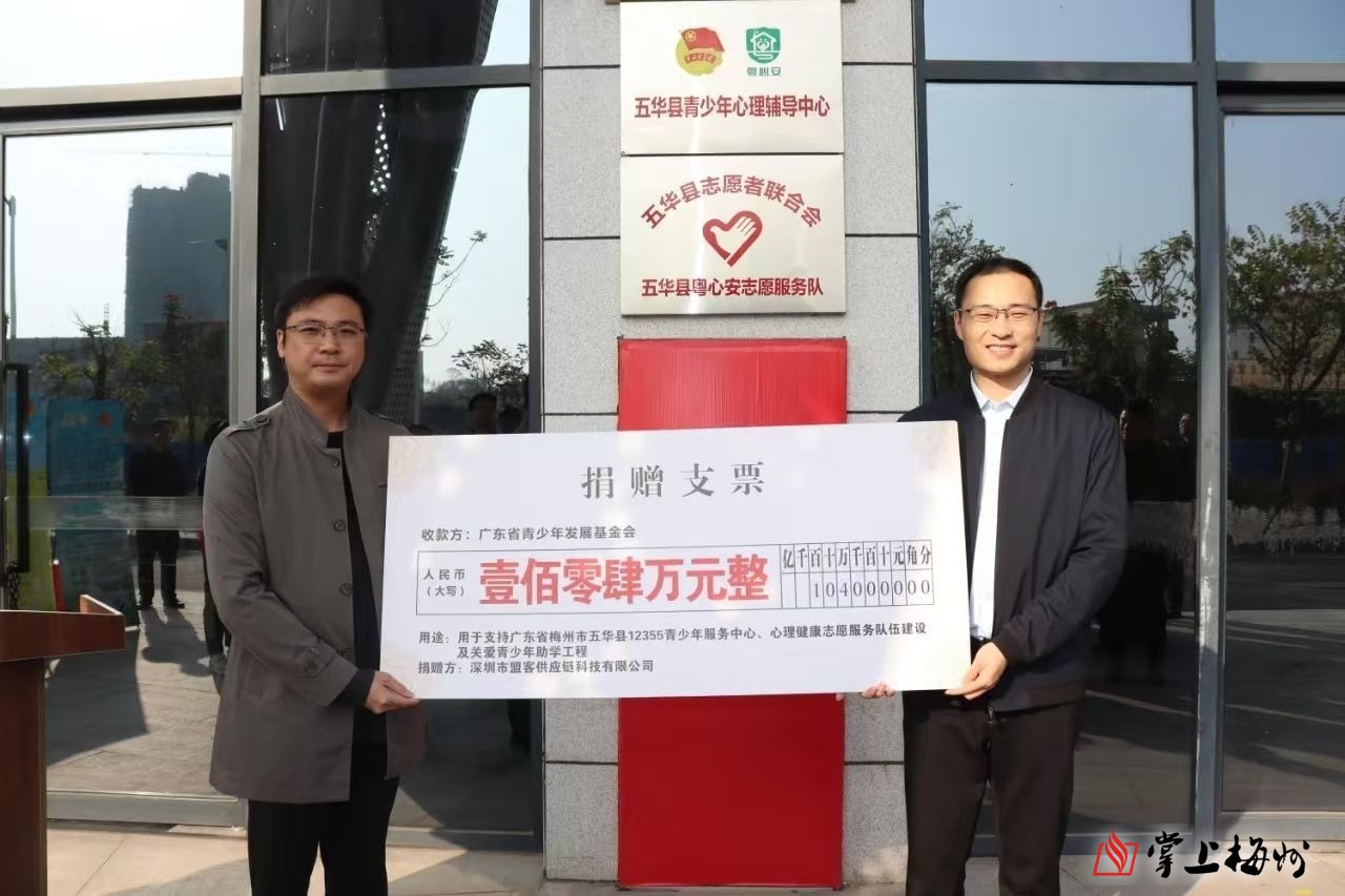 掌上梅州讯 12月11日,由团省委、广东青基会支持的五华县12355青少年服务中心共建揭牌暨关爱青少年爱心助学工程助学金捐赠仪式在五华县心理示范服务中心举行。五华县委常委、组织部部长谢彦博参加活动。