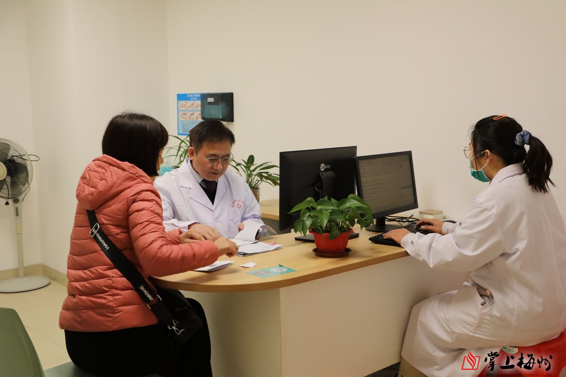 揭牌仪式结束后,薛耀明教授在“名医工作室”开展诊疗活动,耐心细致地为患者诊断病情、制定治疗方案。据了解,薛耀明教授是五华县河东镇人,2006年在美国哈佛大学医学院从事博士后研究,并获聘该校客座教授。他担任南方医科大学南方医院内分泌科主任二十余年,现为该科室的学术带头人,二级教授、主任医师、博士生导师,长期致力于糖尿病慢性并发症的防治研究,在内分泌代谢疾病的诊治方面拥有宽广扎实的理论基础和丰富的临床经验,培养了博士后、博士、硕士研究生近百名,并主持国家自然科学基金和省、市科研课题10余项。