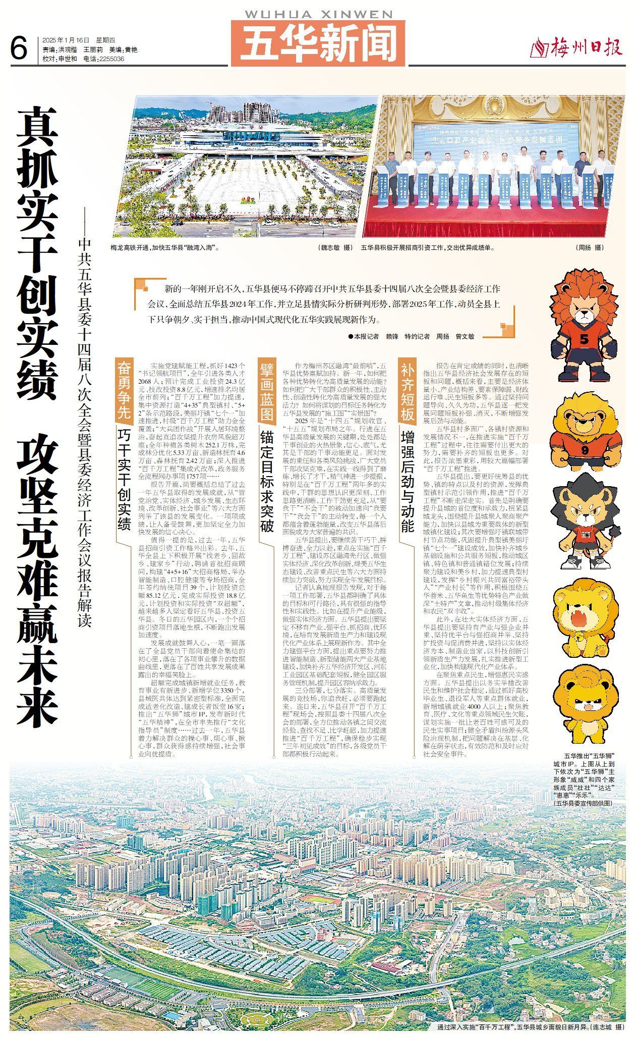 五华县提出,要继续苦干巧干、拼搏奋进、全力以赴,重点在实施“百千万工程”、建设苏区融湾先行区、做强实体经济、深化改革创新、绿美五华生态建设、改善重点民生等六大方面持续加力突破,努力实现全年发展目标。