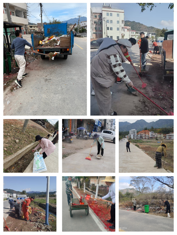 在S226省道蕉州、坪上、双光、居委、横塘等路段,党员干部、志愿者、群众等100余人扛着铁锹、锄头,拿着扫把,重点对节后垃圾、积存垃圾,卫生死角垃圾,乱堆乱放等进行集中清理,为新一年辖区环境卫生面貌持续改善打开良好局面。