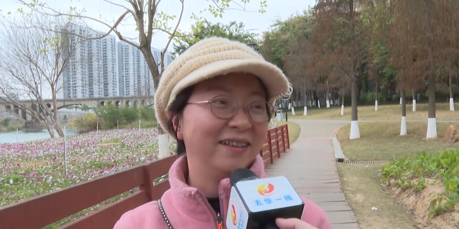 【市民:看到这些花都感觉到心旷神怡,也有一段时间没有来这里了,现在看到这里变得很漂亮,来公园休闲散步也更加有兴致,我也拍了照片,我的朋友也有很多过来这里,还发了朋友圈,都拍得很漂亮,所以我也过来看一下。】