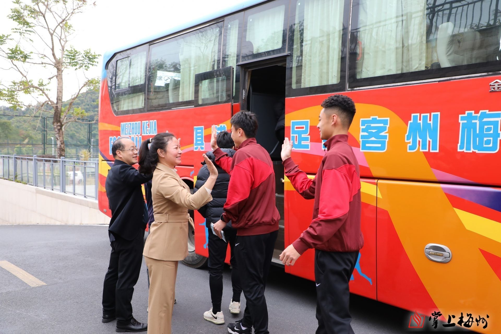 在壮行中,五华县人民政府副县长赖俊香代表社会各界球迷向球队表达了三个感谢,一是感谢梅州客家俱乐部的坚持,十年默默坚守,让球迷看到了广东足球的希望、梅州足球的期盼、五华足球的荣耀;二是感谢全体球员和工作人员的拼搏,为五华人民带来了快乐、带来了欢笑、带来了激情和豪迈;三是感谢新加盟的17名新球员,为球队注入了新力量,将为梅州客家征战新赛季打开新局面。