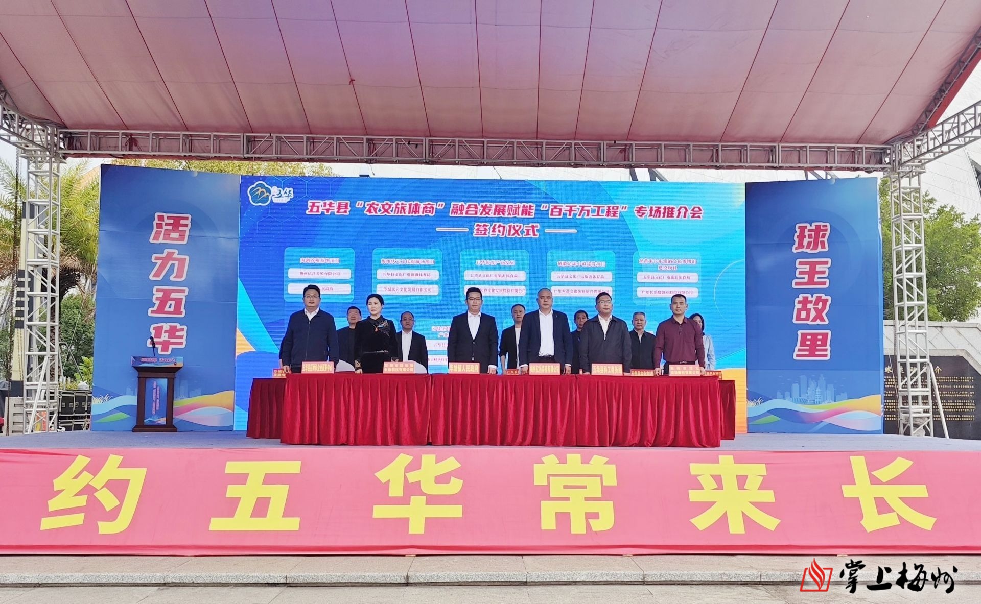 五华县农业农村局与华疆生态农业科技有限公司签订菩米加工招商引资协议,五华县科工商务局与东莞市球元运动器材有限公司签订足球制造项目协议,五华县招商和企业服务中心与世界游轮会有限公司(香港)签订东方红越野基地欢乐谷项目协议……此次推介会还举行现场签约仪式,共签约项目9个,计划总投资约25亿元,涵盖农业、文旅、体育等领域。项目落地后将助推五华农文旅体商产业融合,加速资源盘活与经济升级,迈向高质量发展新阶段。