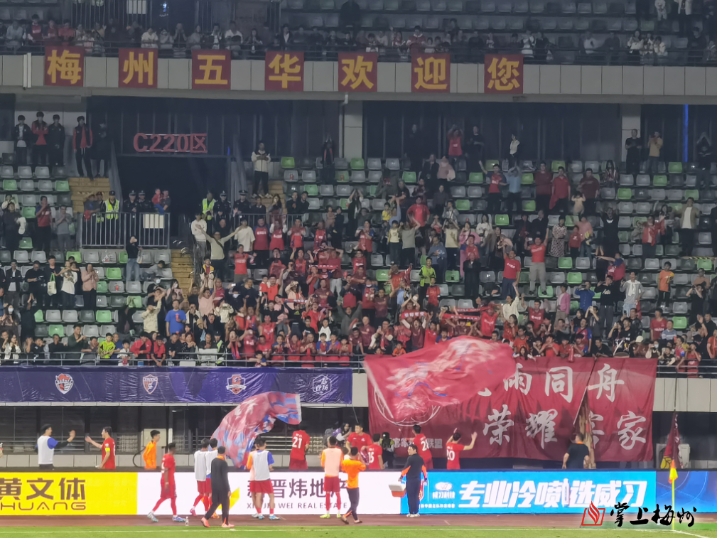 参观结束后,采风团前往五华奥体中心惠堂体育场,观看2025中超联赛梅州客家对阵河南俱乐部酒祖杜康的比赛。这是梅州客家在本赛季的首个主场比赛,也是梅州足球文化的一次重要展示。据悉,赛前,梅州市、五华县以饱满的热情迎接来自全国各地的球迷,文旅、交通、服务等领域做好充分准备。当晚,两队球员在场上奋力拼搏,1.6万多名球迷用整齐的呐喊助威声和锣鼓声为球队注入力量,共享一场难忘的足球盛宴。