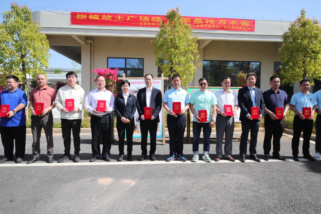 活动现场,钟秀堂、詹庆东与政协委员代表一同为芳名碑揭幕,并分别为慷慨捐赠、鼎力支持绿美五华生态建设的委员和乡贤颁发荣誉证书,对委员和乡贤们的爱心善举给予高度肯定,并号召广大委员和乡贤继续发挥桥梁纽带作用,为家乡高质量发展贡献力量。