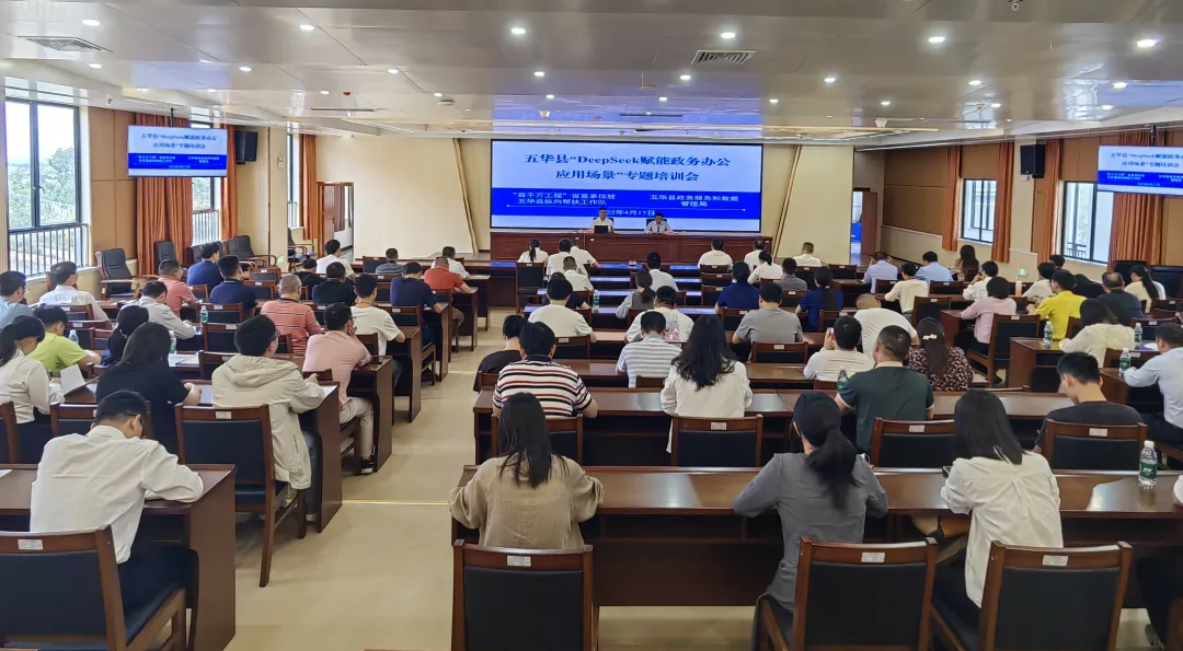 4月17日,“百千万工程”省直单位驻五华县纵向帮扶工作队与县政务服务和数据管理局在县政务服务中心1号楼五楼大会议室联合举行DeepSeek赋能政务办公应用场景专题培训会。各镇及县直有关单位共100多人参加了培训。