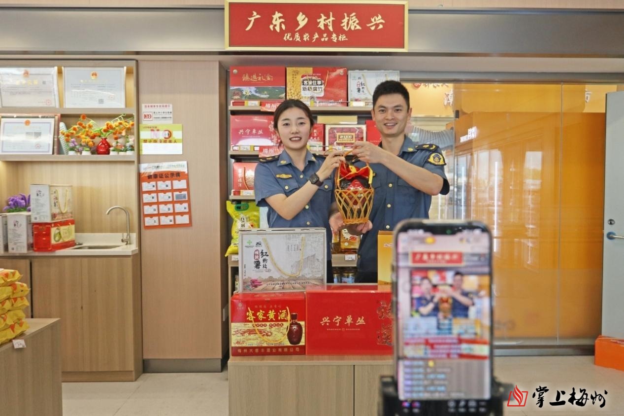 “家人们,来看一下我们非常有特色的梅州腌面,制作简单、风味独特,让人回味无穷……”在特色农副产品展销台,志愿者们摇身一变,成为“带货达人”,通过“线上直播+线下展销”的方式为当地特色农副产品“代言”。直播间内互动频繁,网友纷纷点赞支持,不少线下旅客也纷纷驻足品尝并购买,既满足了味蕾,也为乡村振兴贡献了力量。