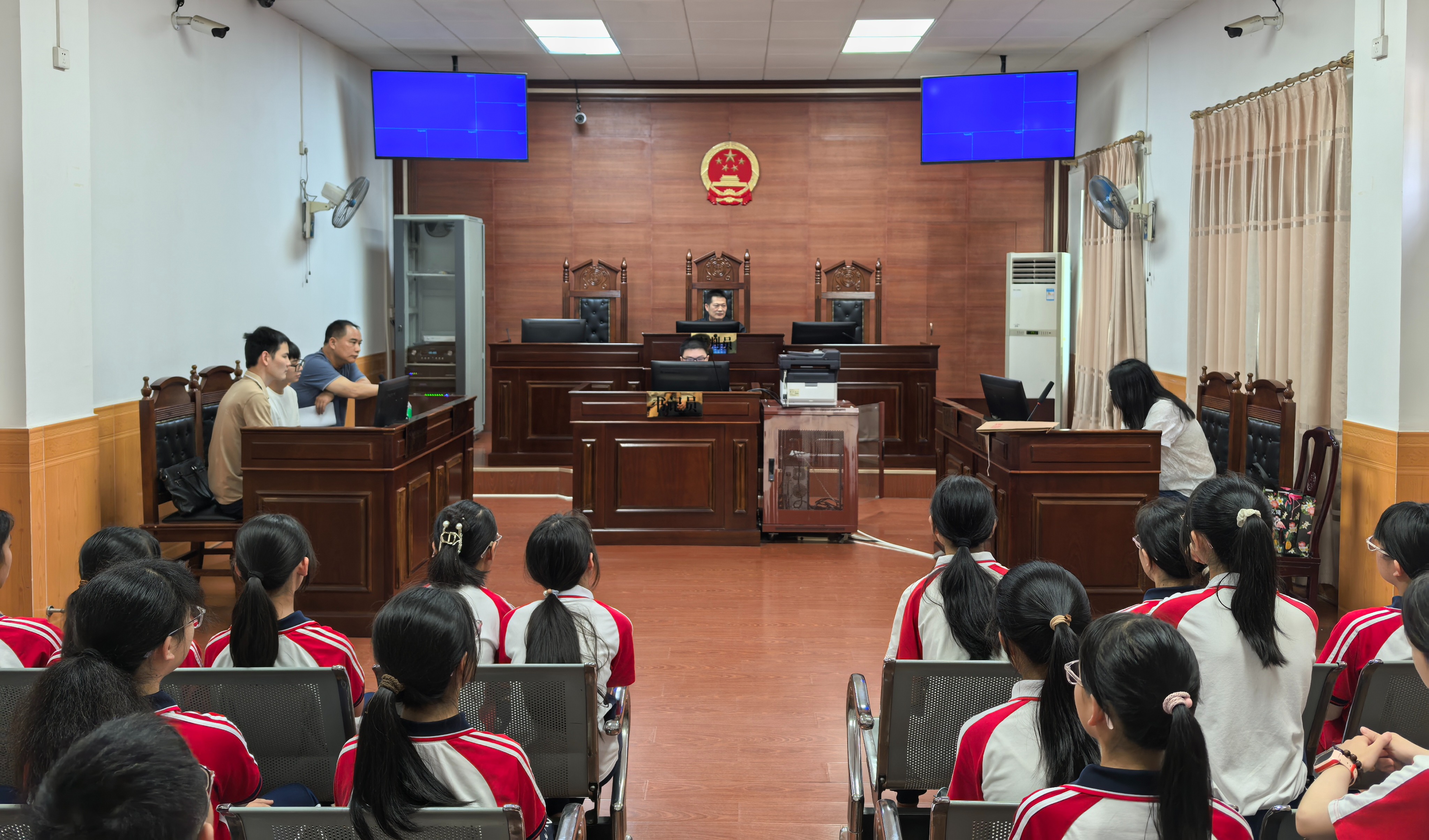 掌上梅州讯 “同学们,欢迎来到华城法庭,让我们一起开启‘学法之旅’!”近日,五华法院华城法庭开展“法庭开放日”活动,邀请银桂小学29名学生走进法庭,以“现场参观+庭审观摩+交流互动+模拟法庭”的全流程体验式法治教育,让学生们近距离感受法院文化,在生动有趣的“庭审课堂”中接续法治薪火。