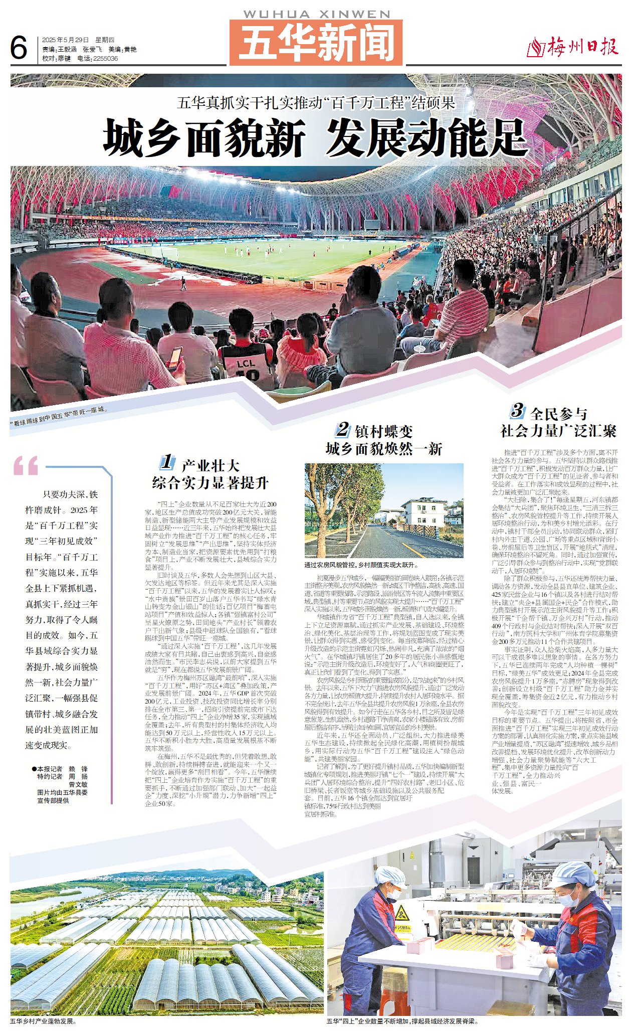 只要功夫深,铁杵磨成针。2025年是“百千万工程”实现“三年初见成效”目标年。“百千万工程”实施以来,五华全县上下紧抓机遇,真抓实干,经过三年努力,取得了令人瞩目的成效。如今,五华县域综合实力显著提升,城乡面貌焕然一新,社会力量广泛汇聚,一幅强县促镇带村、城乡融合发展的壮美蓝图正加速变成现实。