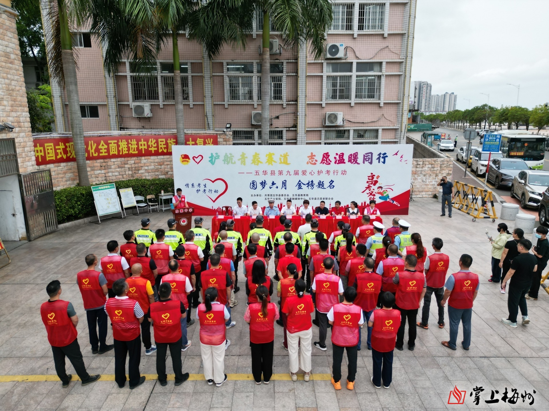 掌上梅州讯 少年执笔逐梦,志愿护航前行。为营造平安、和谐、畅通、有序的高考环境,助力莘莘学子顺利应考,由五华县教育局、团县委、县公安局、县融媒体中心、县志愿者联合会等单位主办的2025年“护航青春赛道 志愿温暖同行”——五华县第九届爱心护考行动于6月4日上午在水寨中学正式启动。