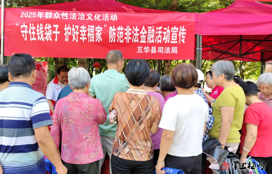 掌上梅州讯 6月5日上午,五华县司法局在长乐公园开展“守住钱袋子·护好幸福家”防范非法金融宣传活动,进一步增强群众防范非法金融活动的意识,切实维护群众财产安全。