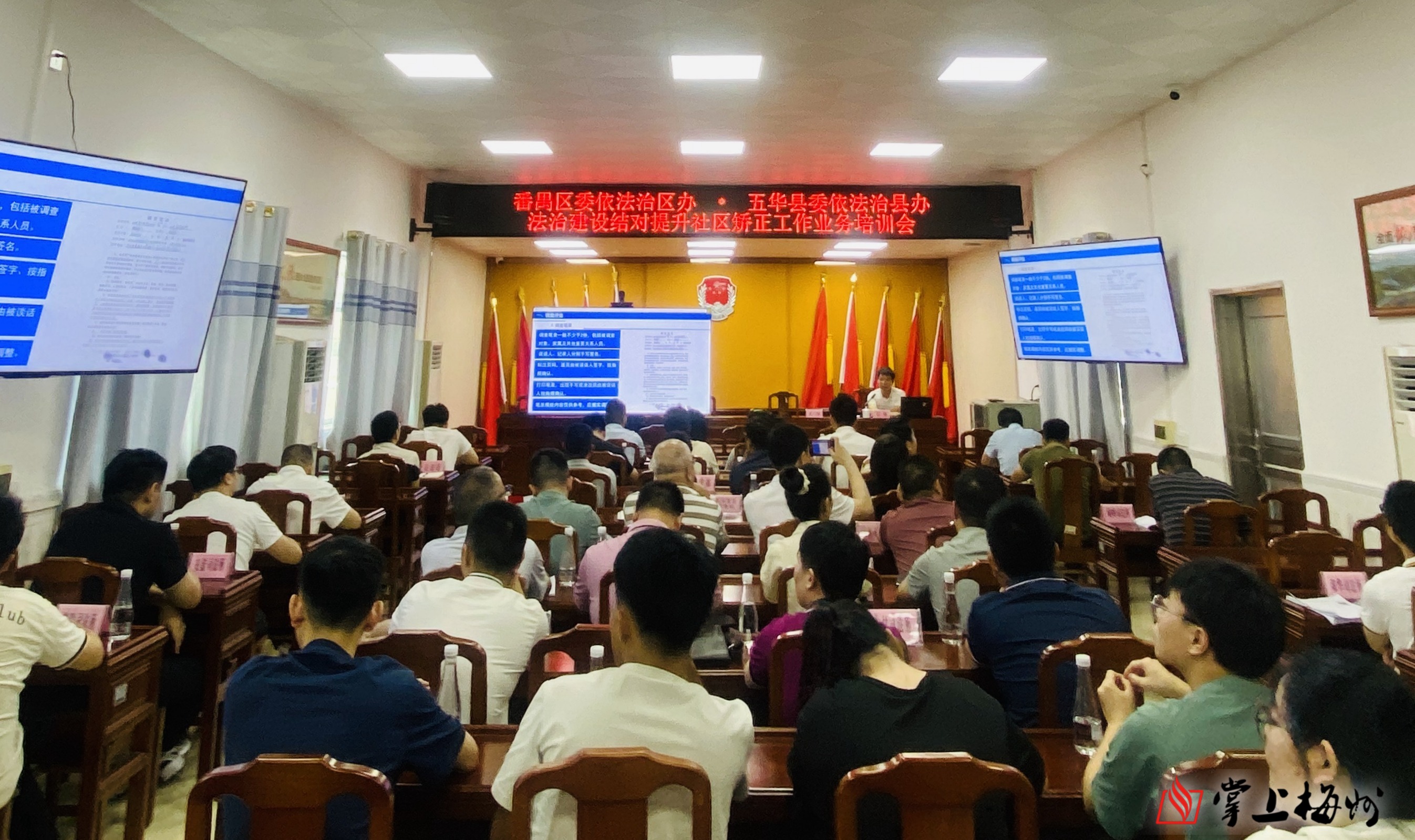 协调会结束后,双方紧接着在五华县司法局六楼大会议室继续开展番禺区委依法治区办·五华县委依法治县办法治建设结对提升社区矫正工作业务培训。番禺区司法局社区矫正执法科副科长、三级主任科员王怀通过互动问答、场景体验等方式,从“调查评估、迁居与执行地变更、暂予监外执行、外出审批和延伸管教警察主要参与工作”五大内容板块进行授课。