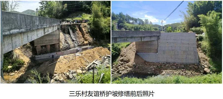对此,梅林镇党委、政府高度重视,协同三乐村“两委”发动村民集资,并积极对接相关部门推进修缮工程。经多方联动,友谊桥护坡修缮工程顺利完工。