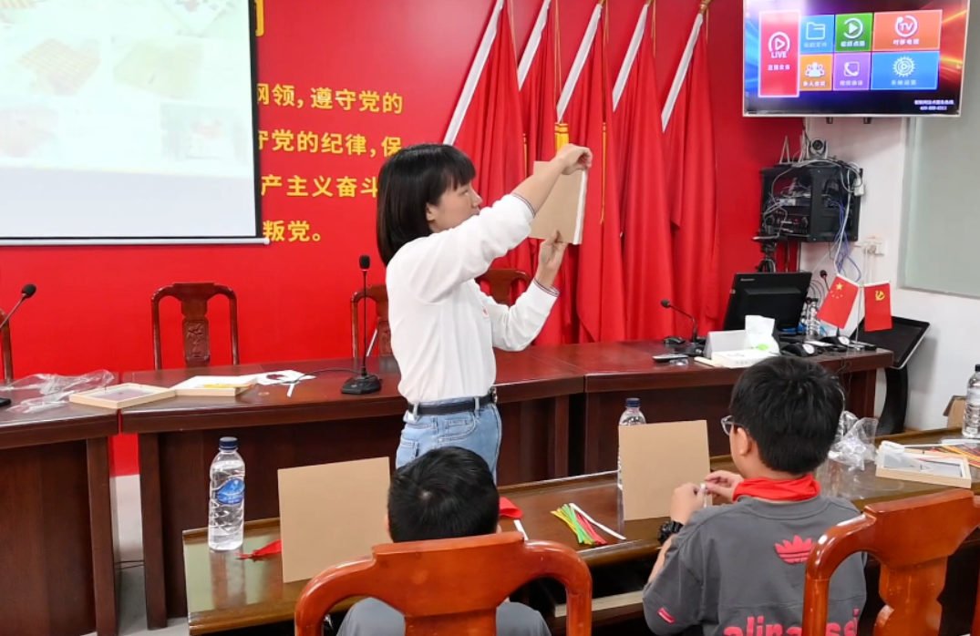活动的亮点当属“非遗竹编” 公益课堂。课堂上,公益讲师邓兰凤耐心细致地讲解竹编知识和制作技巧,指导学生们用竹编工艺制作爱党爱国红色主题竹编画。孩子们全神贯注,在老师和志愿者的指导下,通过精心编制,将一根根竹篾变成了一幅幅精美的竹编画作品,在实践中感受非遗魅力,厚植爱党爱国情怀。