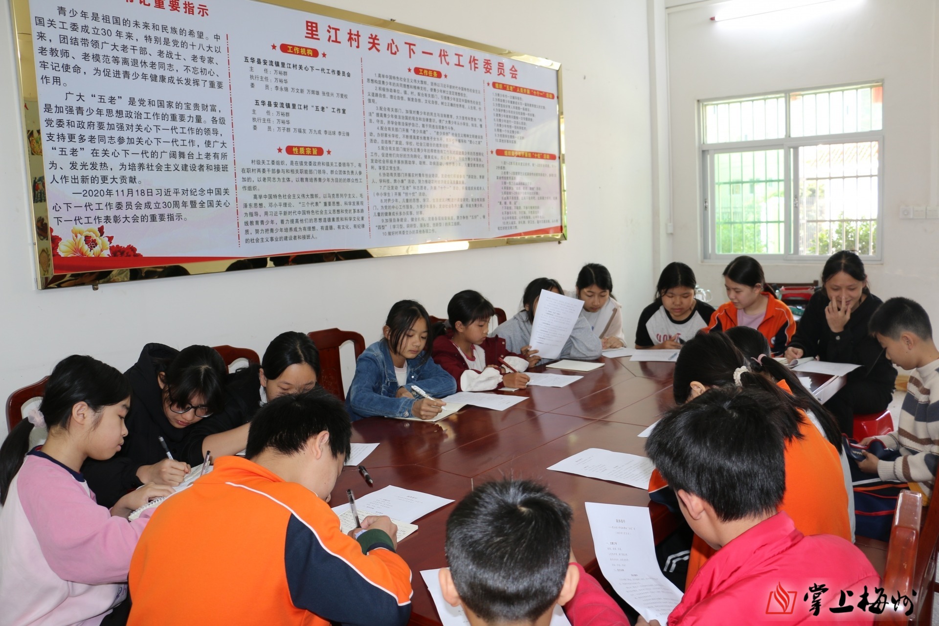 掌上梅州讯 每到周末,在五华县安流镇里江村关工委活动室,传出阵阵孩子们学习的欢声笑语。这是梅州市关心下一代工作向乡村延伸、机关带乡村的一个缩影。梅州市政府办公室机关党委专职副书记、关工委常务副主任万自明同志,利用周末回乡的休息时间,以村关工委名义,义务组织开展了多期小记者小作家培训班,践行社会主义核心价值观,为青少年成长成才加油助威,得到里江村“两委”干部、里江小学老师和广大家长以及青少年学子的好评。