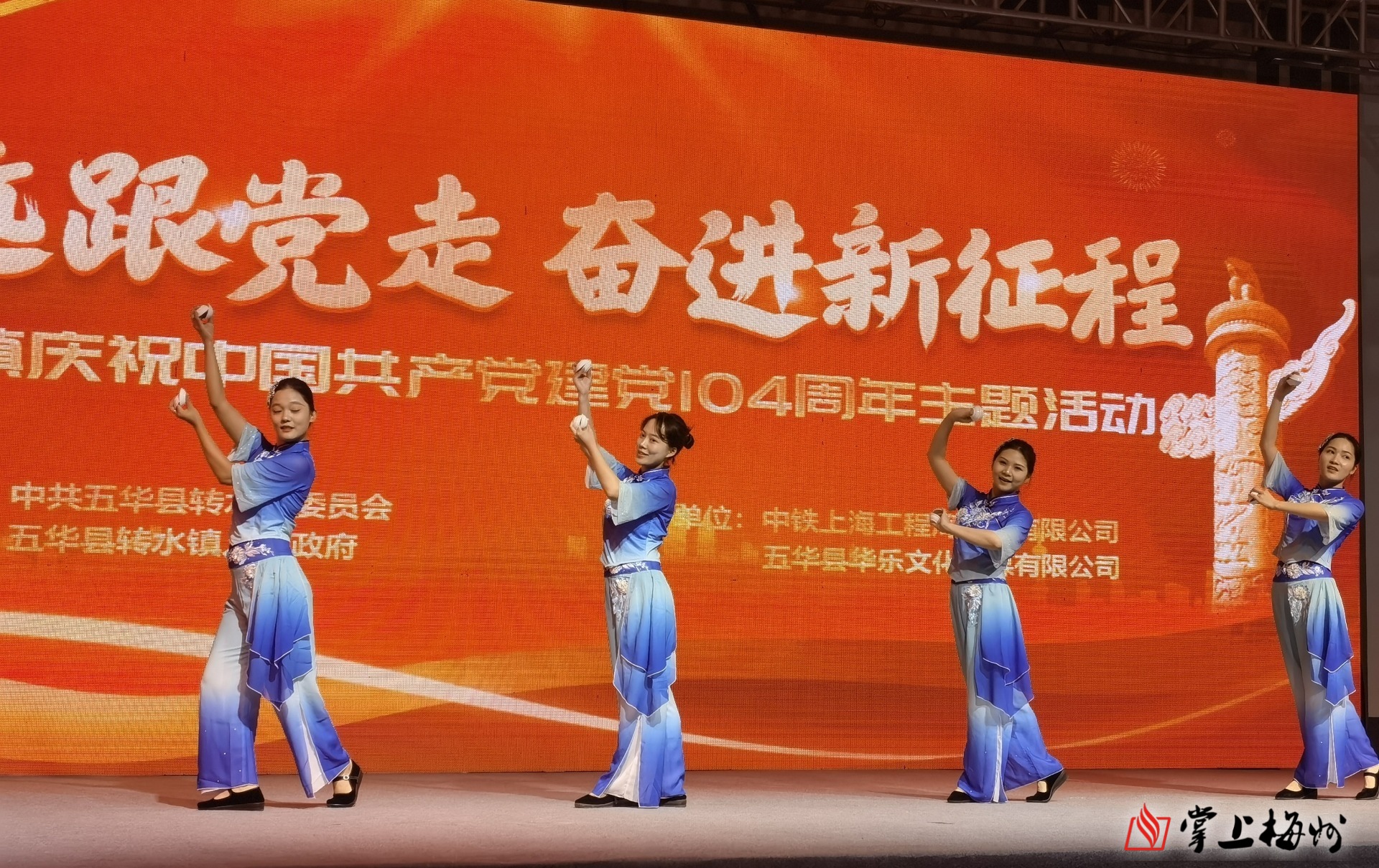 掌上梅州讯 7月1日晚,值此中国共产党成立104周年华诞之际,五华县转水镇举办主题为“永远跟党走·奋进新征程”的庆祝中国共产党建党104周年主题活动。
