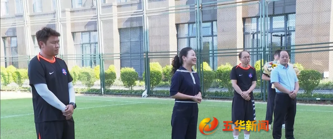 7月5日,在梅州客家足球俱乐部U16梯队勇夺第二届“喀什杯”国际青少年足球邀请赛冠军凯旋之际,五华县副县长赖俊香率队前往横陂足球特色小镇,亲切慰问全体队员及教练员,表彰他们的卓越表现,并致以热烈祝贺和家乡人民的诚挚问候。