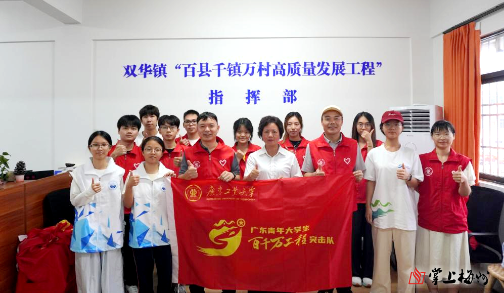 为深入贯彻落实广东省“百县千镇万村高质量发展工程”(以下简称“百千万工程”),助力乡村产业升级与文化振兴,近日,广东工业大学“数缘小队”赴梅州市五华双华镇开展暑期“三下乡”社会实践活动,与镇党委书记张小玲、副镇长黄玉昌等镇领导班子座谈交流,重点围绕特色农产品提质增效、乡村文化赋能等议题展开深入探讨。
