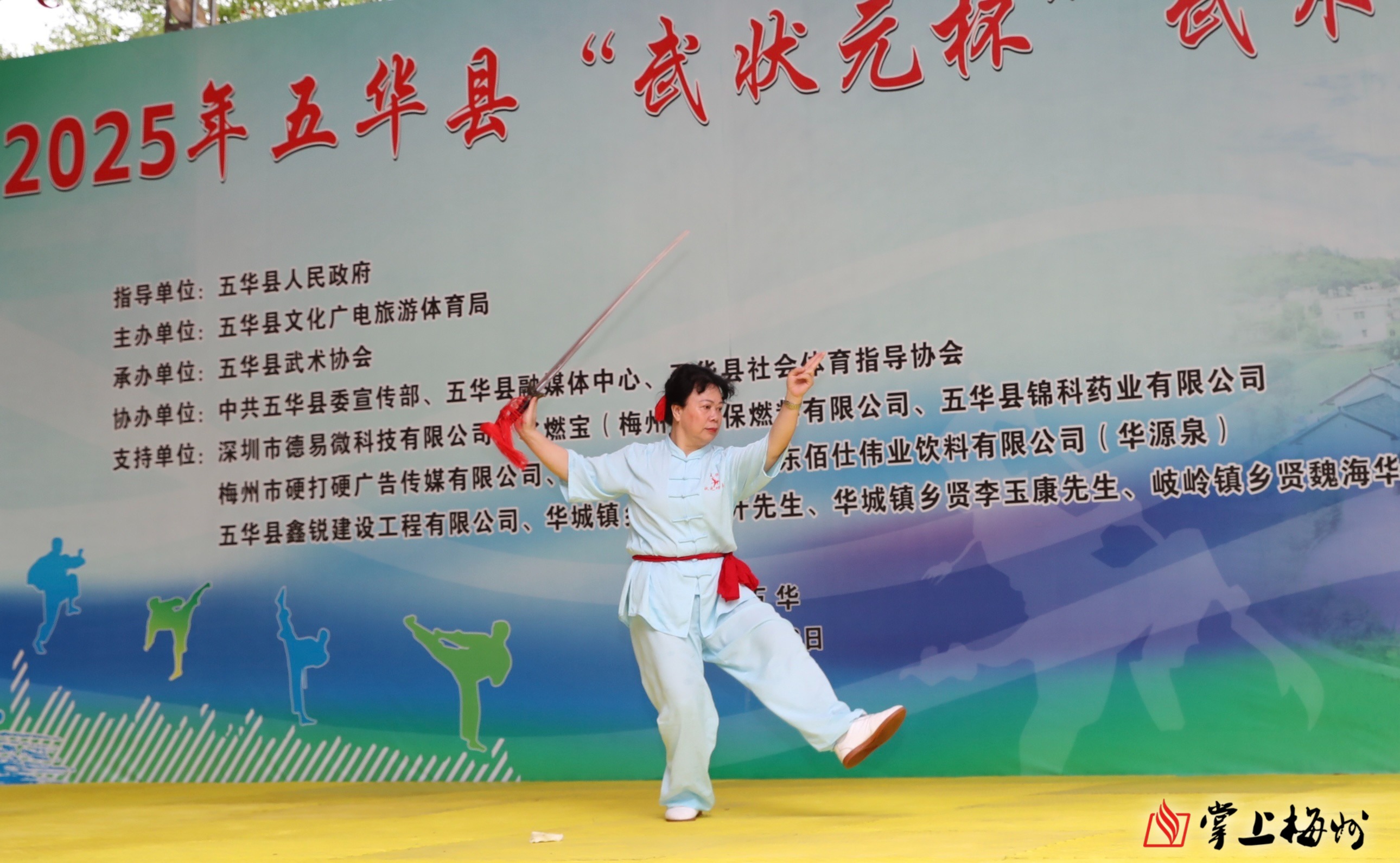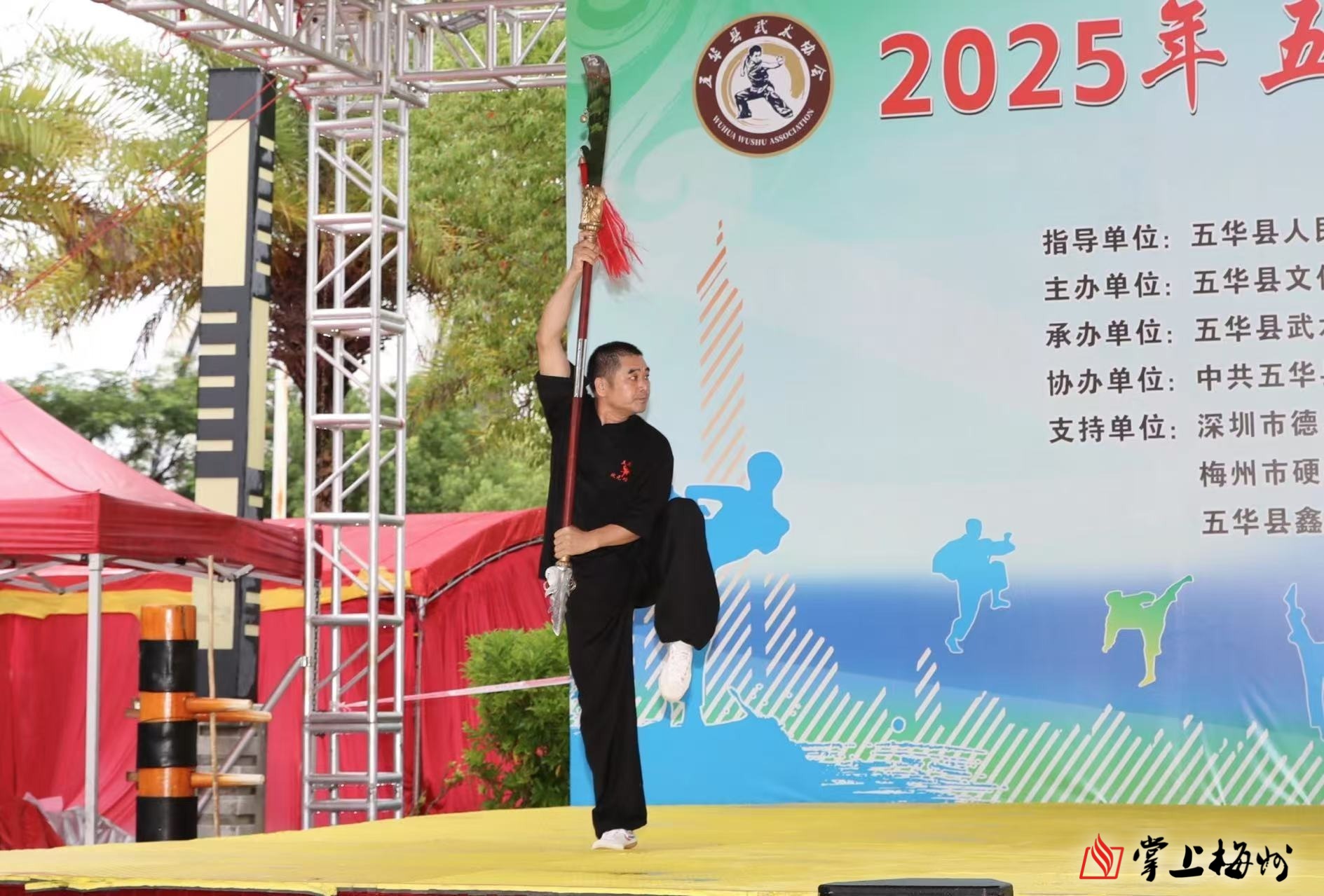 掌上梅州讯 8月2日下午,五华奥体中心广场锣鼓喧天、武风飞扬,2025年五华县“武状元杯”武术交流活动在此精彩上演。来自香港、深圳及梅州各地的108名武术爱好者齐聚一堂,以拳会友、以武传情,为现场观众呈现了一场兼具传统底蕴与竞技活力的武术盛宴。