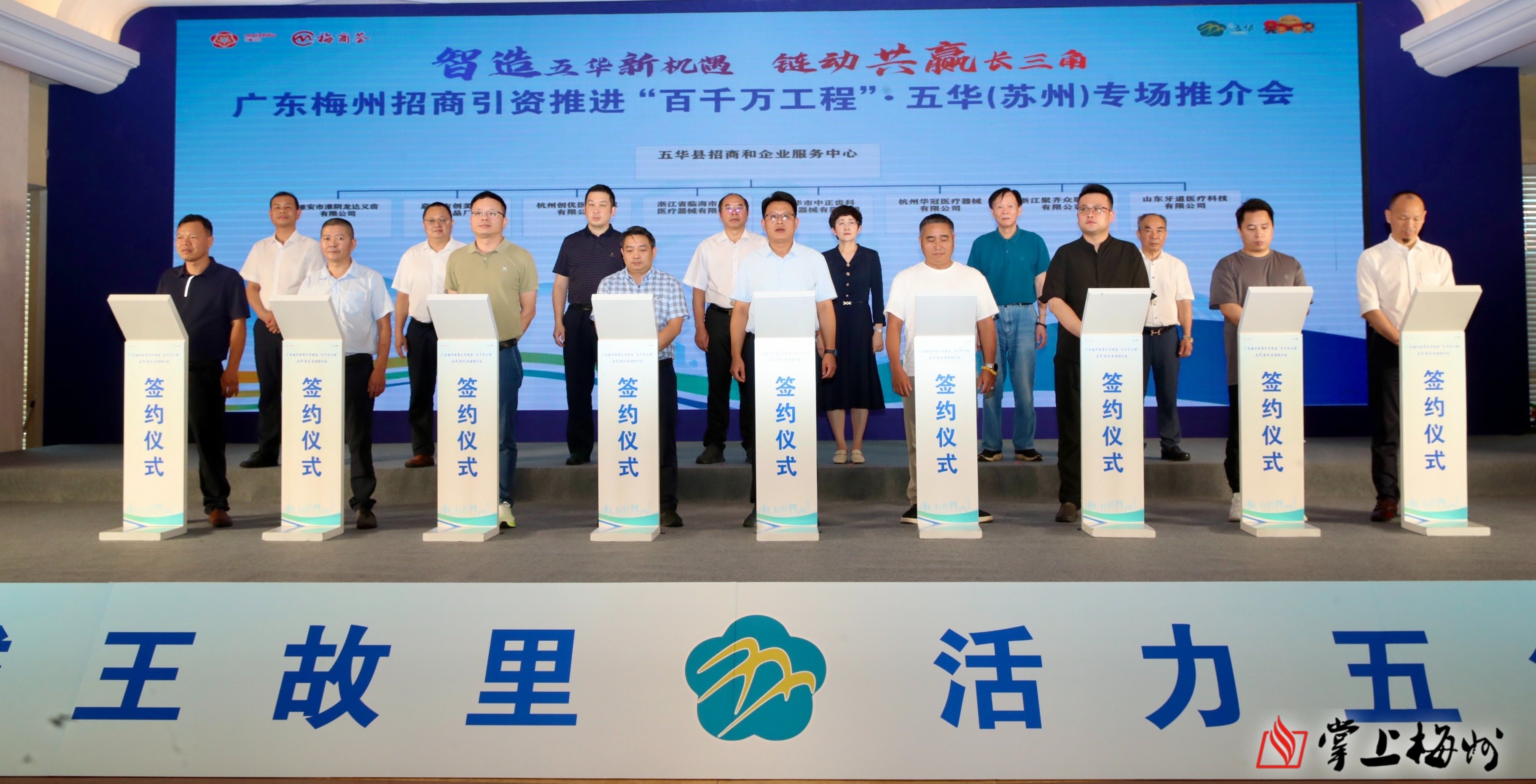 掌上梅州讯 夏意正浓的苏州,迎来了一场跨越千里的“双向奔赴”。8月14日,由梅州市政府主办、五华县政府与梅州市商务局承办的广东梅州招商引资推进“百千万工程”·五华(苏州)专场推介会在江苏苏州举行。推介会以“智造五华新机遇 链动共赢长三角”为主题,现场签约项目16个、计划投资总额23.2亿元,为五华智能制造产业发展按下“加速键”。