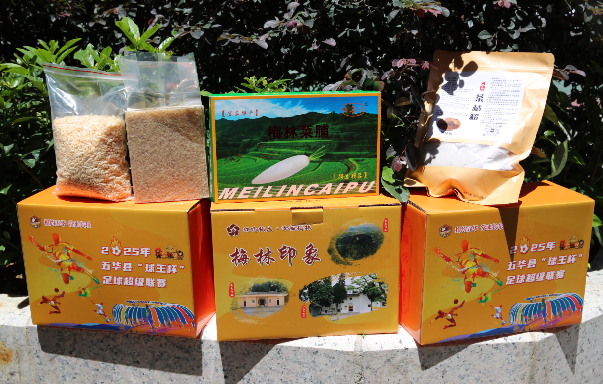 更令人关注的是,梅林镇强镇富村公司借此次赛事,推出了“梅林手信”。这份手信精选4种本土农特产品:梅林菜脯、菩米、炒米,以及用油茶果壳研制而成、可作天然绿色洗漱用品的茶枯粉,让更多人通过“舌尖”和“实用好物”,记住了梅林的特色与风味。