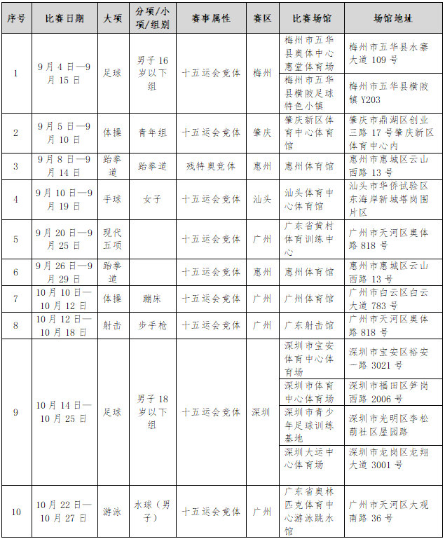 根据组委会的安排计划,8月28日起,将陆续开售第一批曲棍球、足球、篮球、体操、射击等17个项目门票。之后将根据竞赛日程安排,陆续分批安排比赛项目上线销售。其中,在梅州赛区举办的十五运会足球(男子16岁以下组)也将作为首批于8月28日开售。