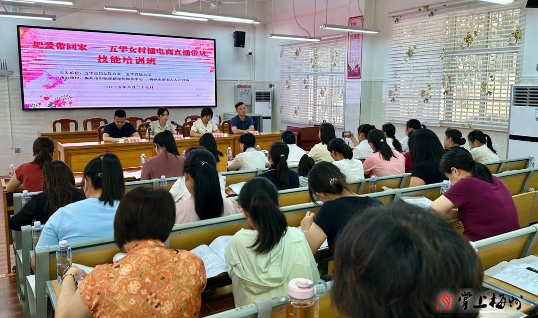 掌上梅州讯 8月27日上午,由五华县妇女联合会、五华开放大学主办,梅州市巾帼双新双创服务中心、梅州市新农人人才驿站承办的“把爱带回家”——五华女村播电商直播带货技能培训班在五华开放大学举行开班仪式。