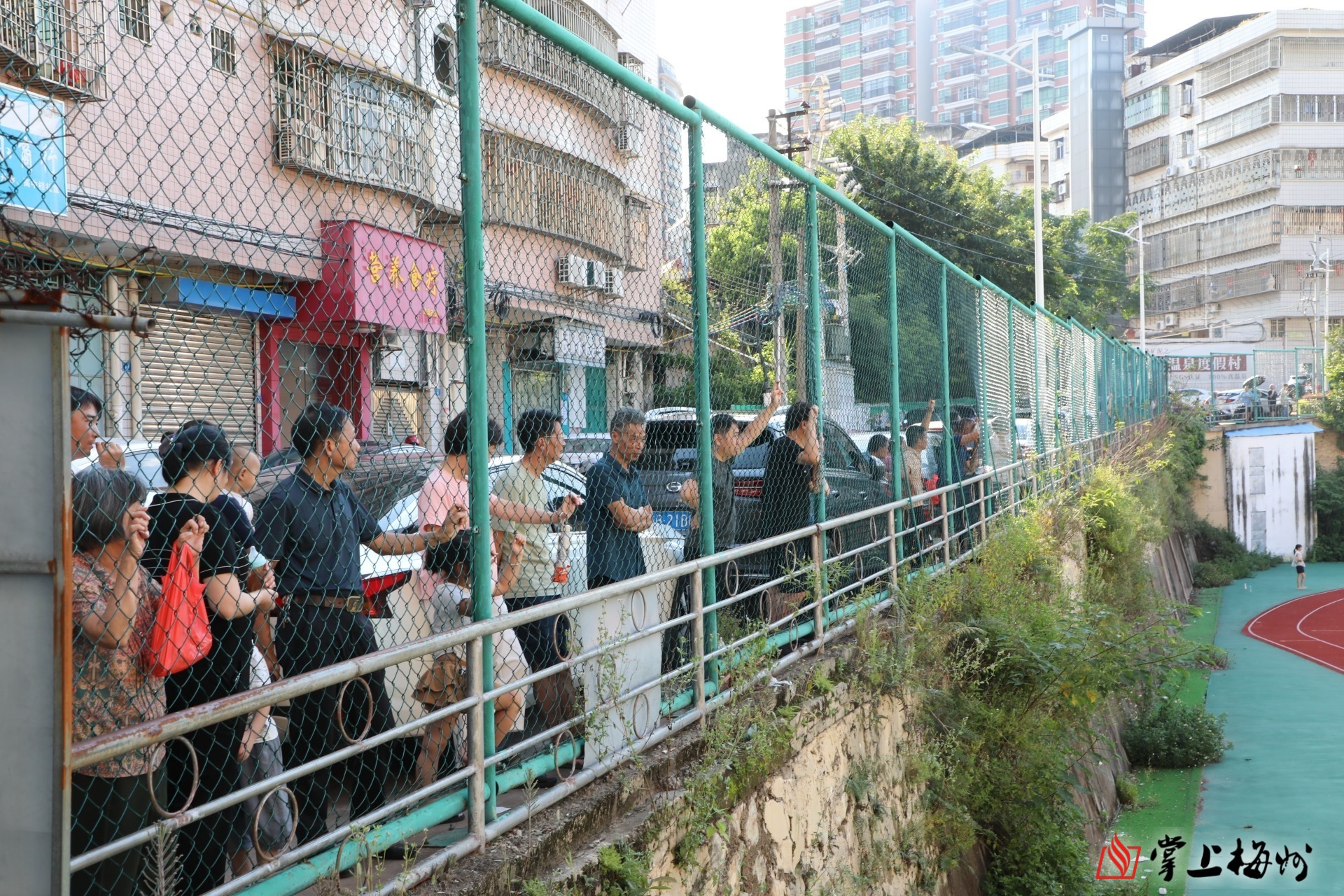 两队赛前热身阶段就已火药味弥漫:华城队球迷高喊“咱是五华老根儿”,水寨队球迷立刻回敬“荣耀之战,势必拿下”!场边球迷摇旗助阵、互相叫板,热闹得像赶庙会。比赛气氛更是热烈!300名中英文学子身穿统一校服呐喊助威,领队带头喊出“水寨猛龙必胜”,孩子们的口号声又燃又洗脑;群众自发组成的锣鼓队节奏精准,每一次敲击都卡在攻防转换的关键节点。场外小吃摊香气四溢,柠檬冰水供不应求。摊主陈阿姨笑道:“喝杯饮料,开心拿下‘老大哥’”!
