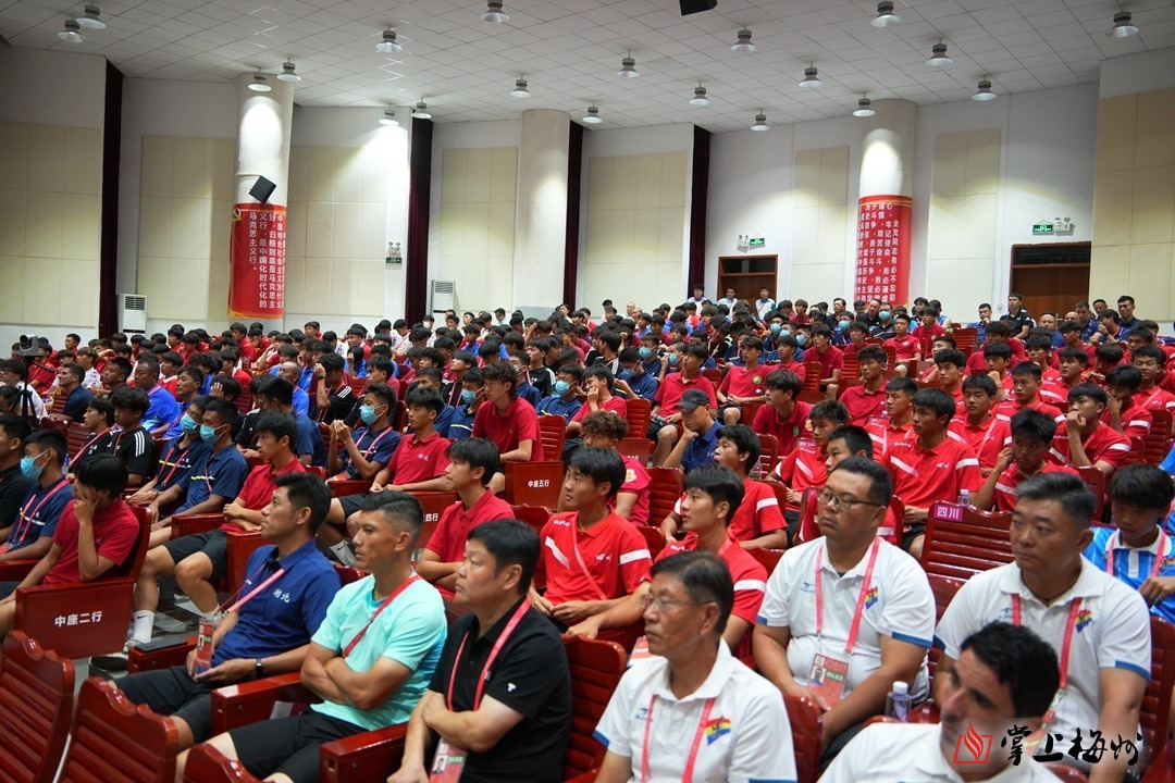 掌上梅州讯 9月2日晚,第十五届全国运动会足球项目男子U16组赛风赛纪和规则宣讲会在梅州五华举行,就赛风赛纪工作和项目规则进行部署、宣讲。中国足协副主席、竞委会副主任万建斌,各参赛队伍运动员、领队、教练员及竞赛处工作人员、裁判监督等相关人员参加会议。