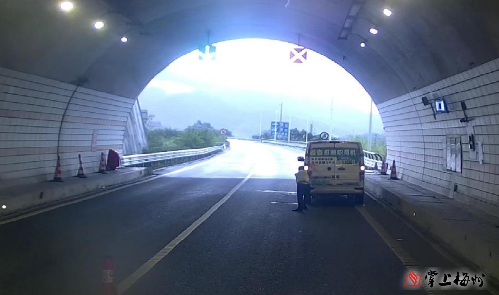 10月13日15时许,大坪隧道内发生惊险一幕,一辆厢式小货车突然故障熄火,停在离隧道出口仅10余米处,司机站在车旁检查车辆,现场未布置安全警示标志,极易引发追尾事故。路政员到达现场后,一人在隧道入口实施临时交通警戒,另一人则协助司机处理车辆故障。