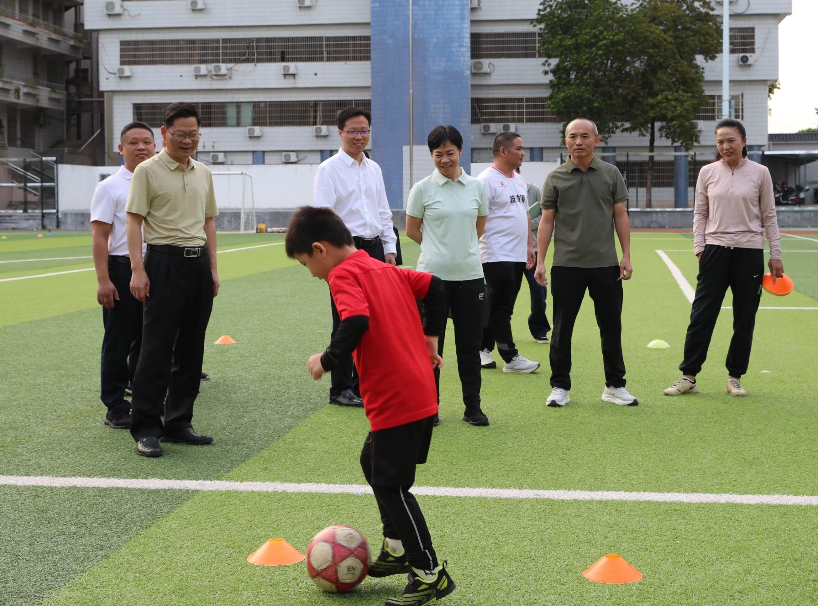 钟秀堂一行先后来到横陂镇第二小学、县第一小学、县体育运动学校等地,通过实地察看、听取汇报、与相关负责人交流等方式,详细了解校园足球(寄宿制)训练、校园足球训练、足球“双青”工作、重点足球赛事筹备工作及足球赛事白皮书编制工作等情况,并对工作开展中遇到的堵点难点问题,提出意见建议。