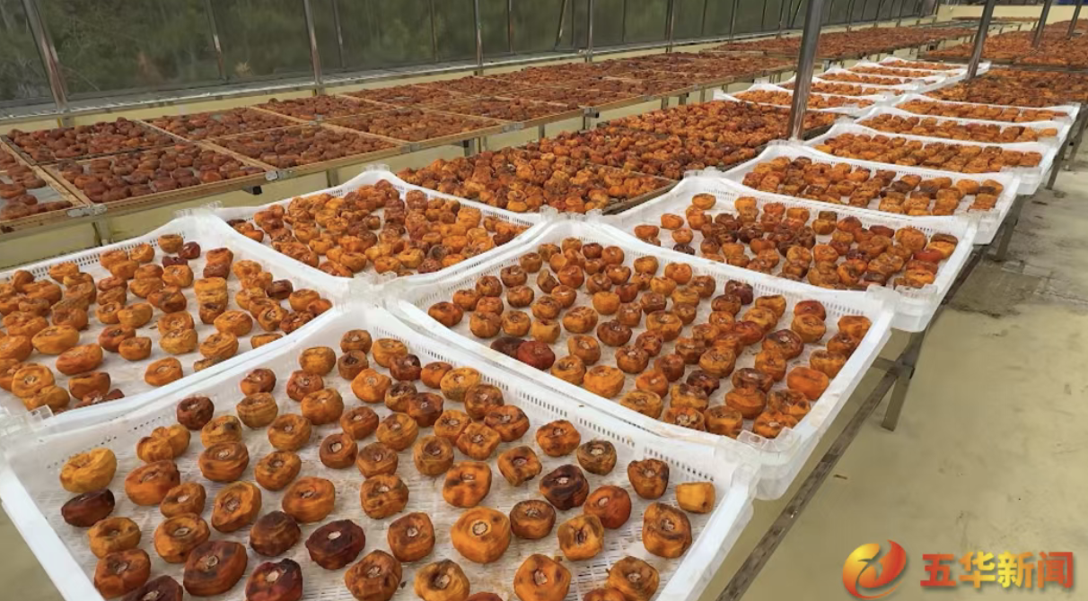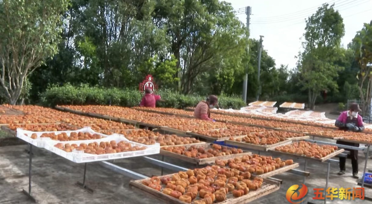 五华县长布富强农副产品专业合作社法人代表 李美霞:这个晒了大概有十一二天,差不多可以去核,去核之后要慢慢揉捏,做完之后再晒三四天,然后再来一遍,反复几次后就定型,定型之后果肉会变得柔软,可以拉丝,一般柿花要进行四到五次的揉捏才能变成成品,做成成品后还要经过微波消毒,再包装。