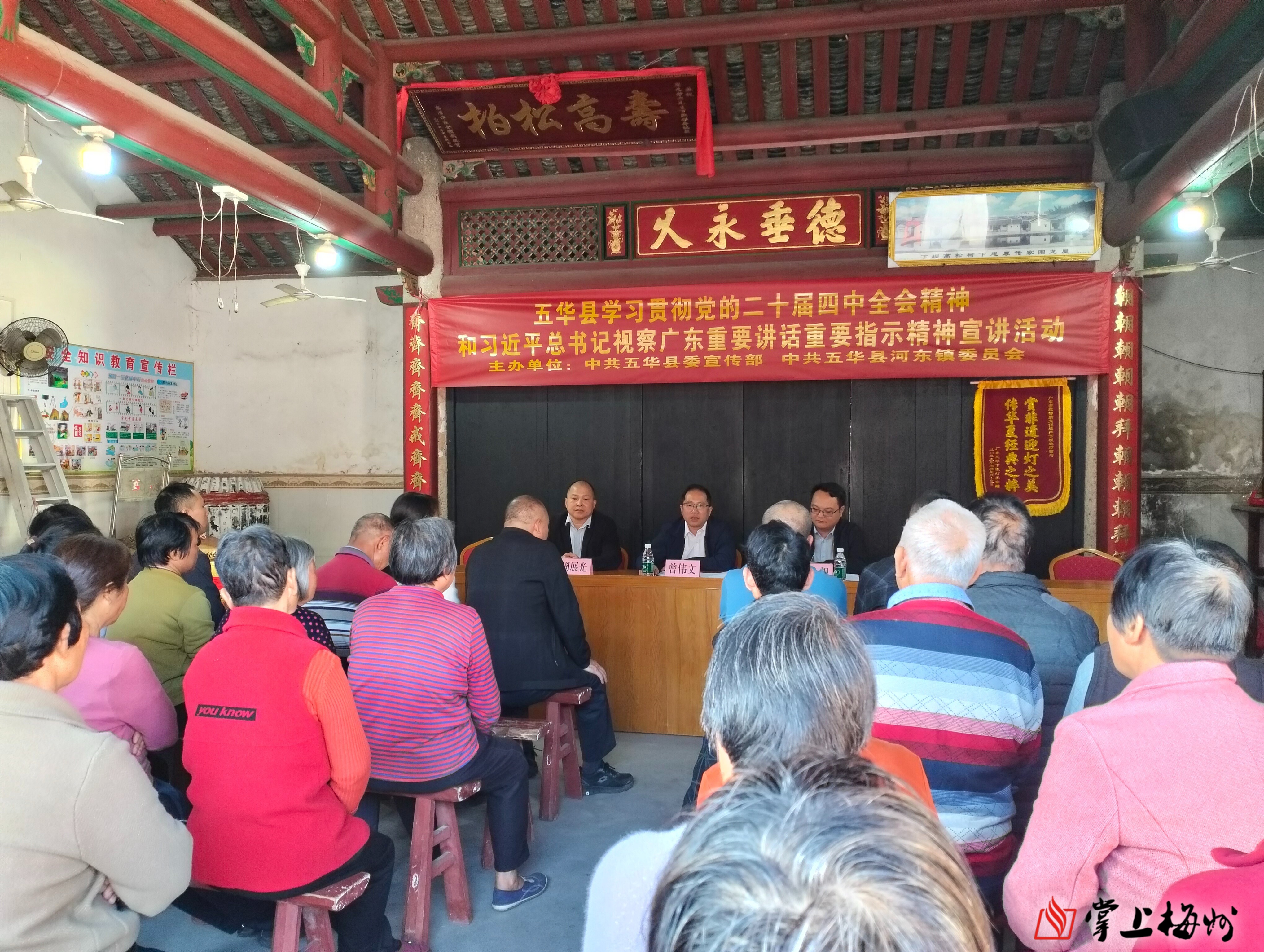 掌上梅州讯 “党的二十届四中全会可不是远在京城的‘大事’,跟咱老百姓的日子紧挨着哩!‘十五五’规划就是咱未来五年的‘幸福路线图’—— 家门口的路咋修得更顺,孩子上学咋更省心,老人看病咋更方便,桩桩件件都说到了咱们的心坎上!”12月23日下午,五华县河东镇高榕村的 “忠厚传家” 围屋里暖意融融,30多名党员干部与村民代表围坐在一起,一场聚焦党的二十届四中全会精神、习近平总书记视察广东重要讲话重要指示精神的宣讲活动,正用家常话讲透政策红利,让大家听得入神、想得入心。