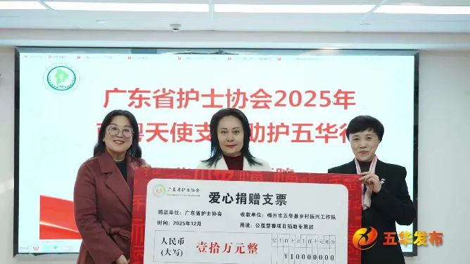 活动现场,五华县人民医院、县卫健局及省护士协会相关负责人先后致辞,对基层护理工作取得的成绩给予肯定,并鼓励广大护理人员不忘初心、精进业务,为群众提供更优质的护理服务。随后,省护士协会向河东镇乡村振兴工作队捐赠10万元公益善款,并向县人民医院赠送专业护理书籍,以实际行动为基层护理事业建设添砖加瓦。