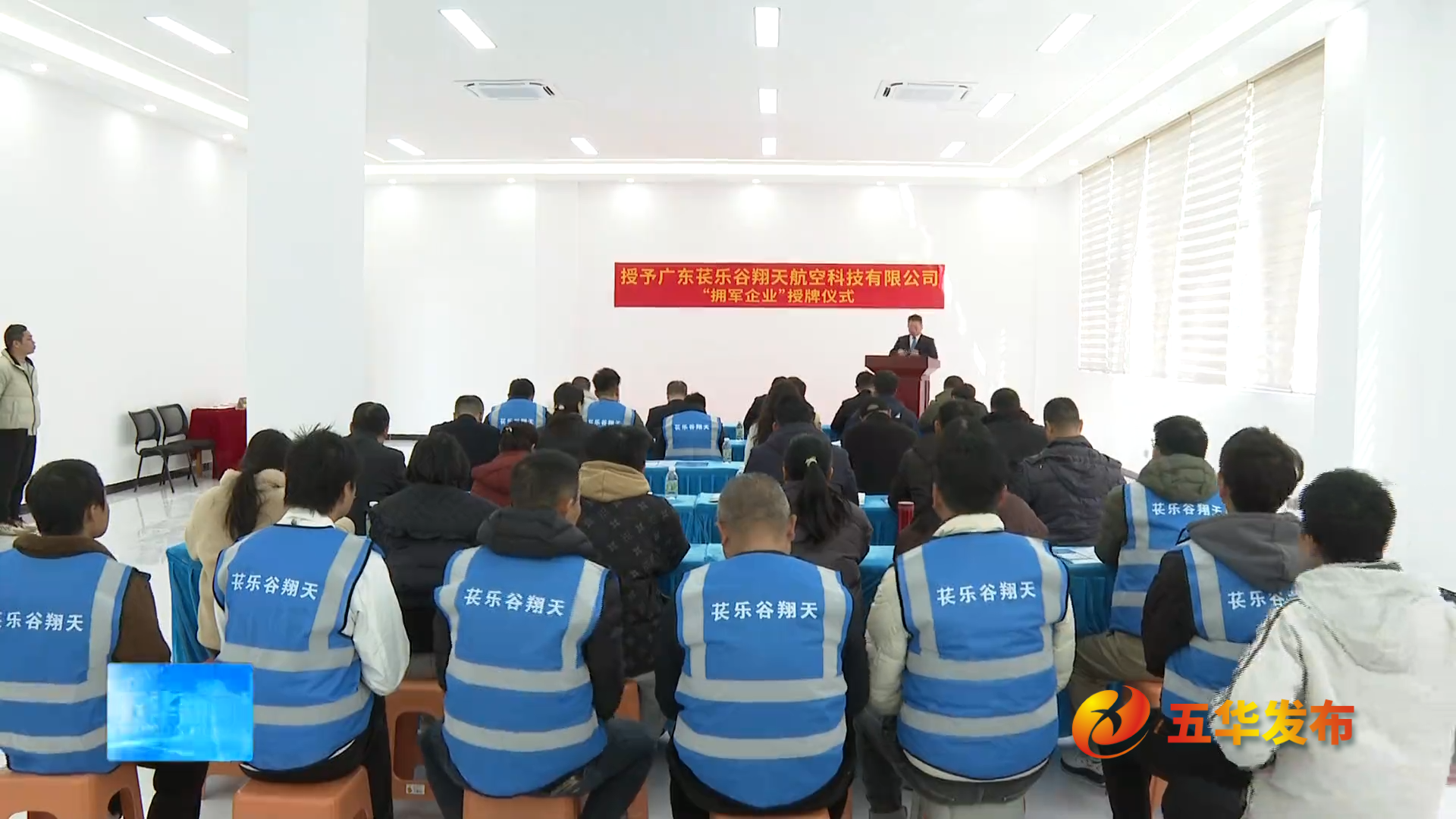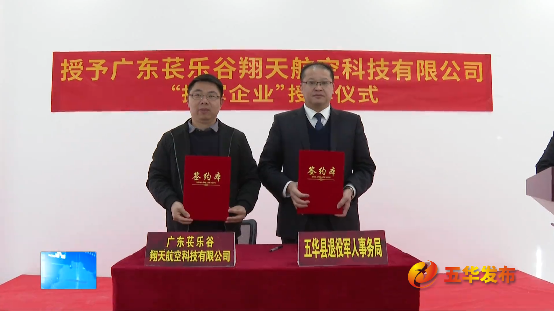 仪式上,广东苌乐谷翔天航空科技有限公司与县退役军人事务局签订合作协议书。随后,黎辉文为获评企业授牌,企业代表作了表态发言。活动现场还慰问了退役军人代表,并组织了无人机表演、操作展示。