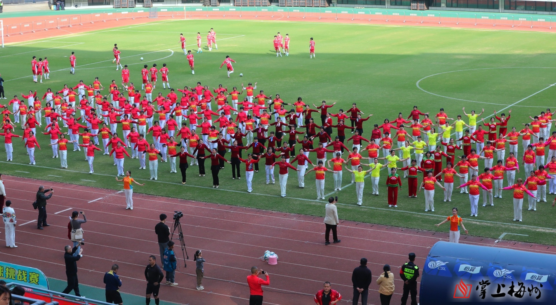 赛场之外,文体融合的独特编排为赛事增添了别样韵味。赛前与中场休息时段,广场舞表演《母亲是中国》,《太极拳八段锦》、歌曲《撸起袖子加油干》等精彩节目连连,带给观众更加丰富的观赛体验。“我们希望通过表演助力县超聚人气,更让老体协的同志们老有所为、发挥余热。”五华县老体协主席钟绮霞表示,这场跨越年龄的文体对话,正是五华全民体育氛围的生动写照 。