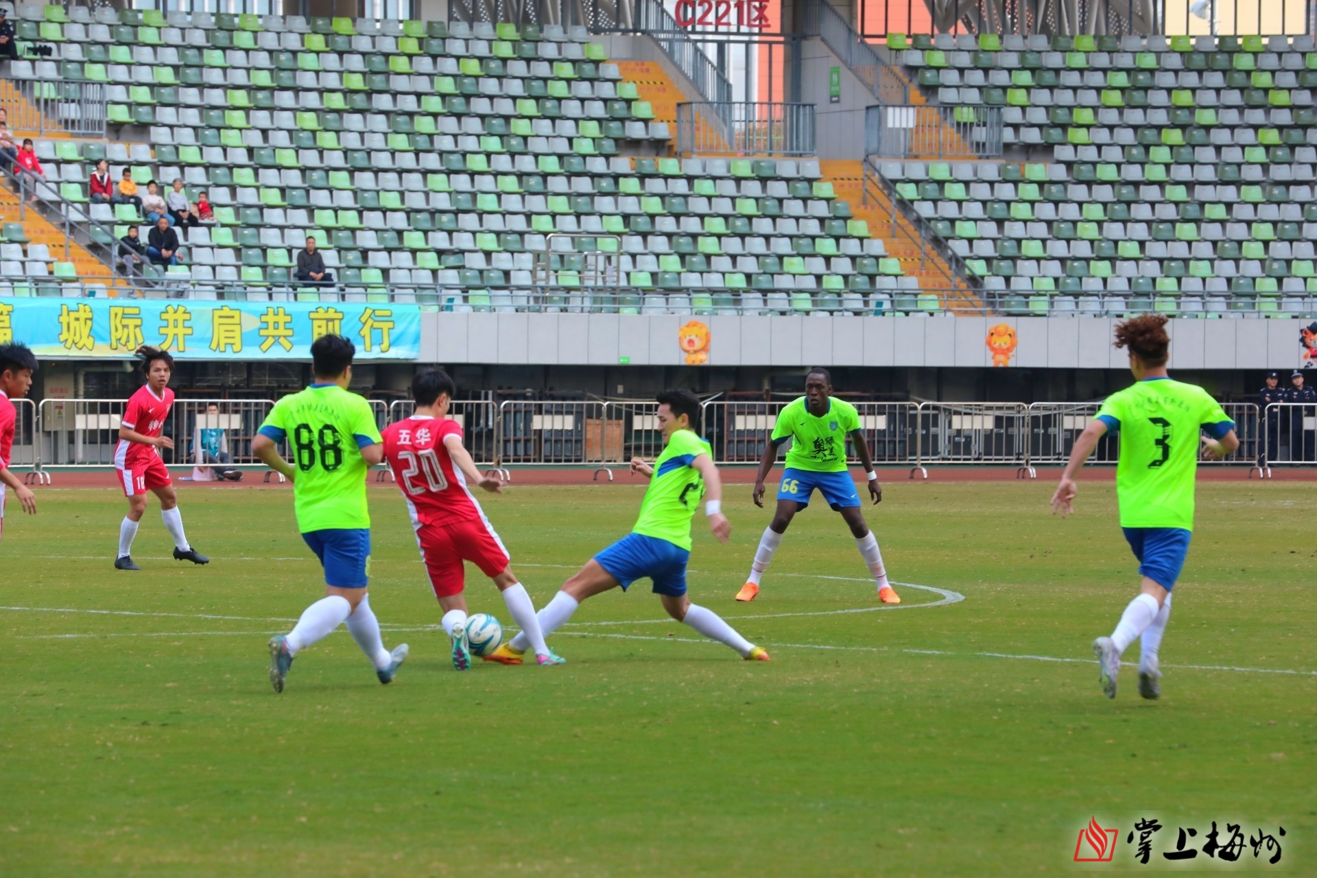 掌上梅州讯 1月17日下午,五华惠堂体育场热闹非凡,五华县超足球挑战赛第三场在此精彩上演。主场作战的五华县超队(转水队)迎战劲旅番禺奥绿美队,最终县超队4:1战胜对手,继续延续主队的连胜势头。