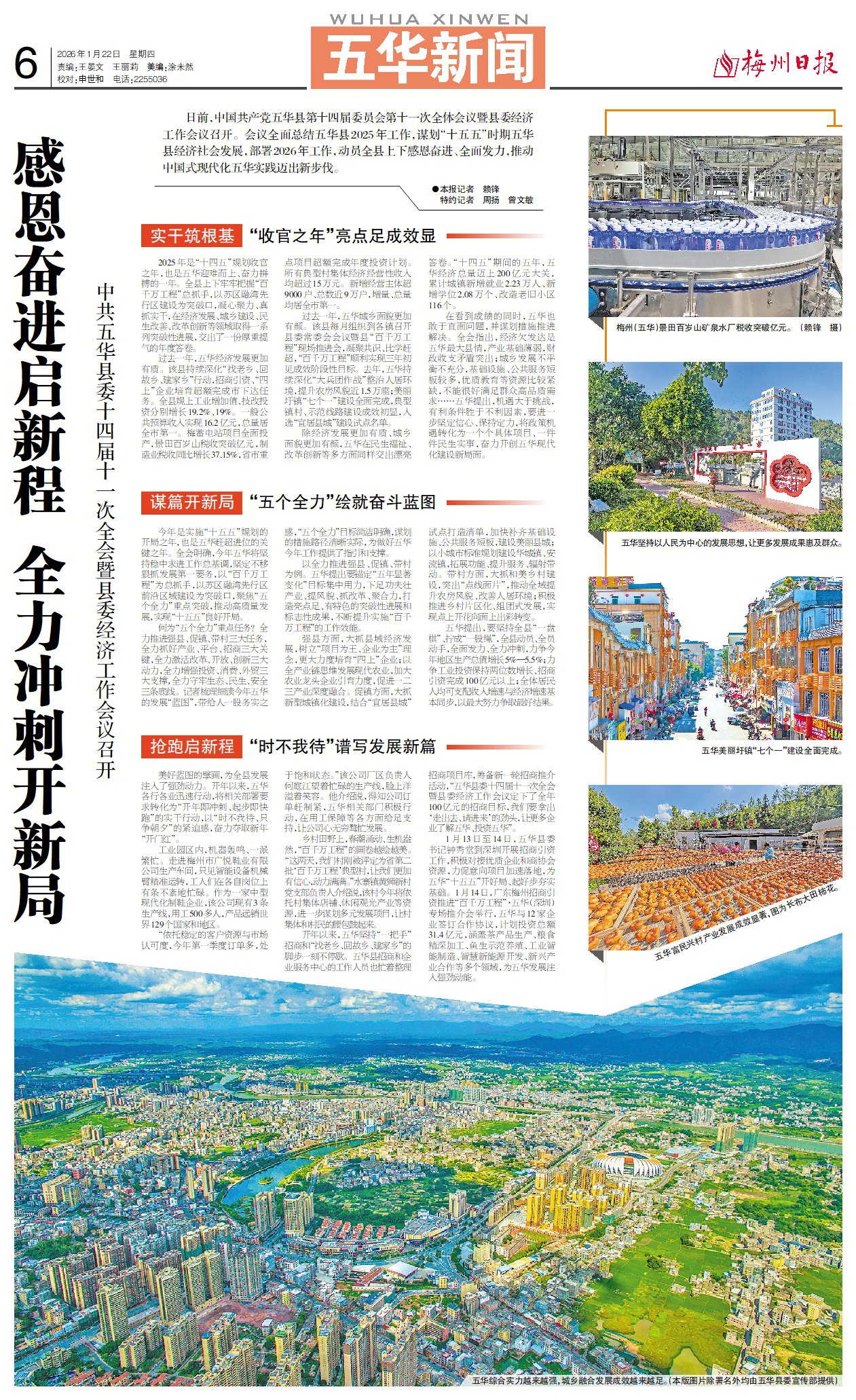2025年是“十四五”规划收官之年,也是五华迎难而上、奋力拼搏的一年。全县上下牢牢把握“百千万工程”总抓手,以苏区融湾先行区建设为突破口,凝心聚力、真抓实干,在经济发展、城乡建设、民生改善、改革创新等领域取得一系列突破性进展,交出了一份厚重提气的年度答卷。