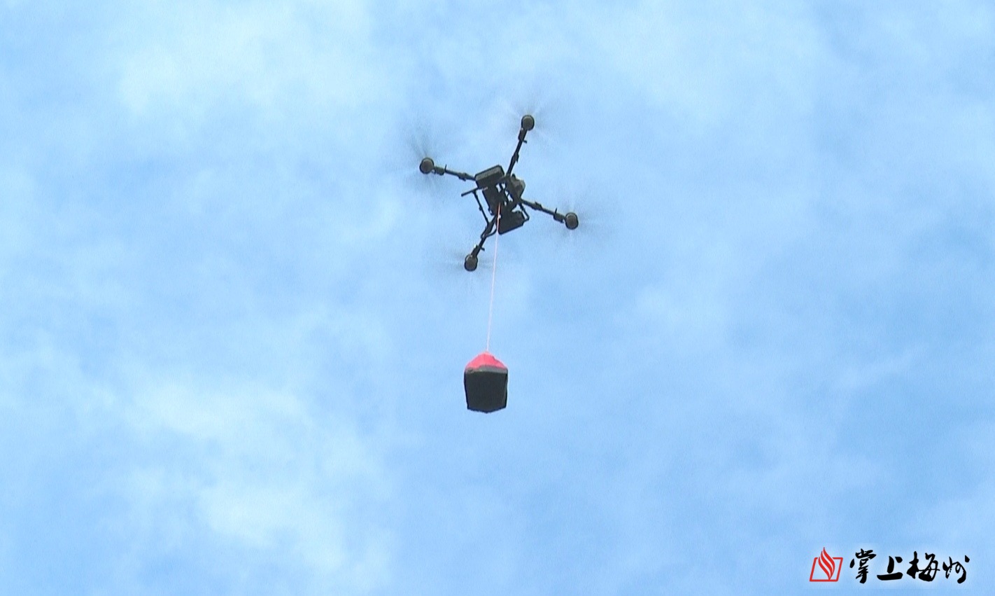 在梅林镇圩镇“飞鸟驿站”,“空中送件”的高效场景精彩上演:一架无人机稳稳吊起装载数十件快递的包裹袋升空,朝着5公里外的梅南村精准巡航,全程仅4分钟便顺利完成投递,随后无人机自动收绳返航,整套配送流程规范有序、一气呵成。这一创新模式既让当地村民倍感新奇,更让大家收获了实实在在的便利。“我平时会经常在网上购物,去镇上拿的话一来一回几公里,比较麻烦。”村民谢富丽说,现在有无人机送到村里面来的话,就很方便。