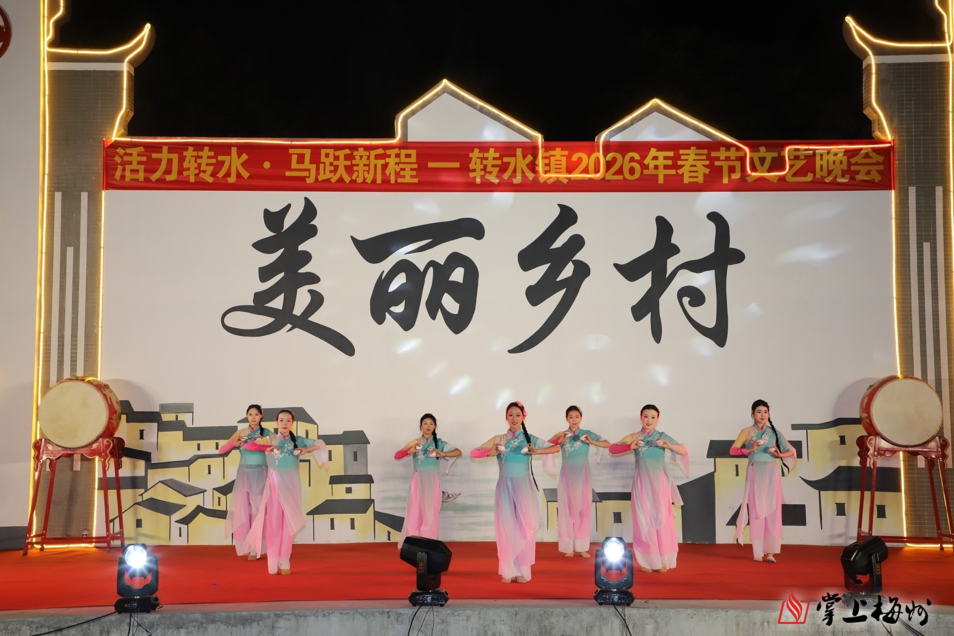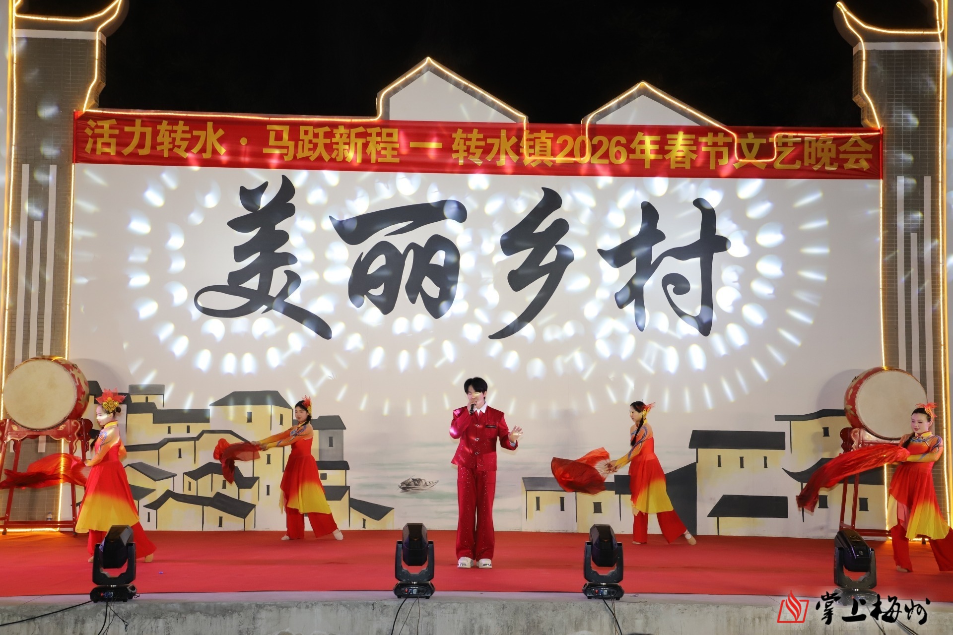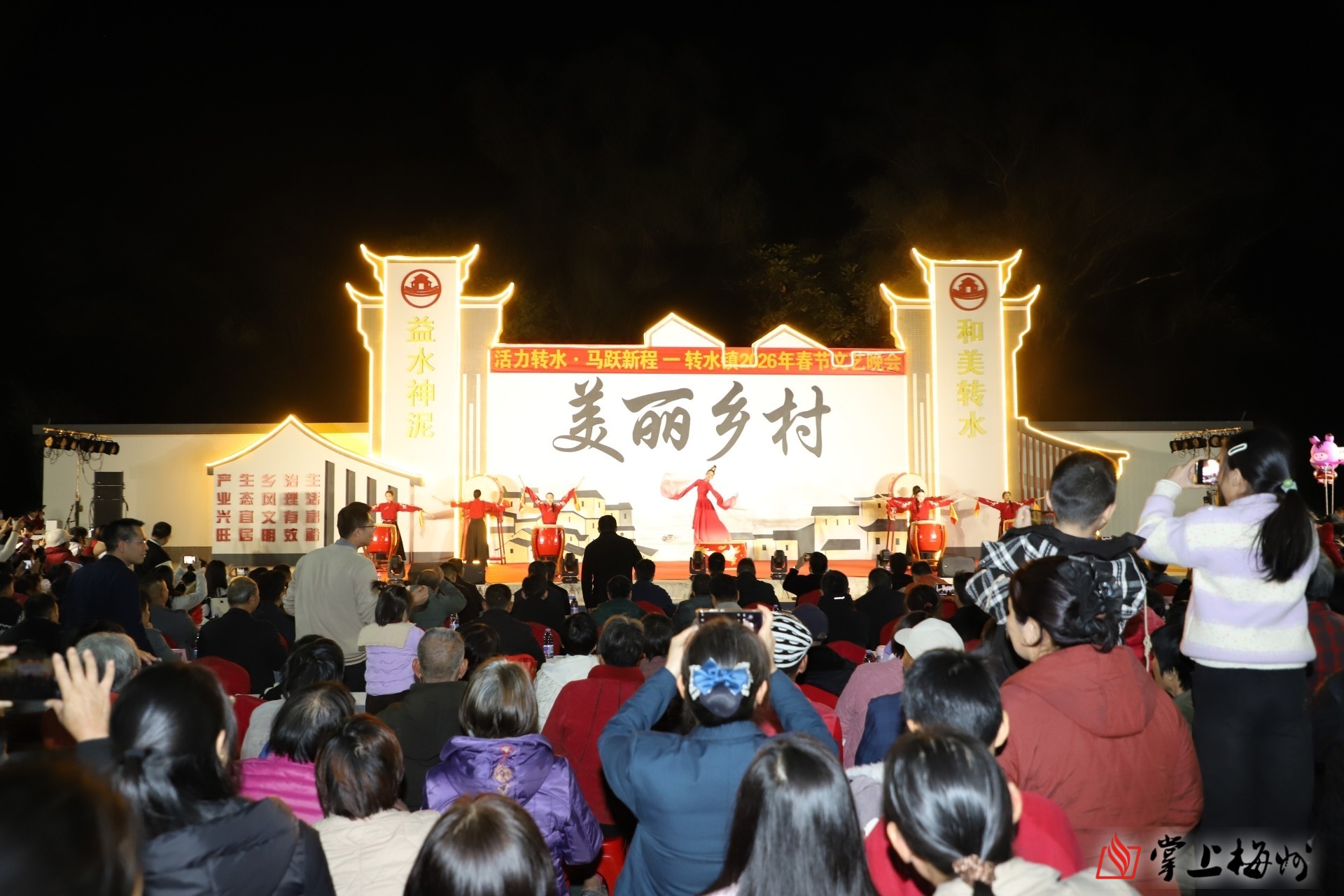 掌上梅州讯 金风送暖辞旧岁,骏马奔腾迎新春。2月9日晚,五华县转水镇文化广场灯火璀璨、欢声雷动,以“活力转水·马跃新程”为主题的2026年春节文艺晚会在此精彩上演。各界嘉宾与转水镇父老乡亲欢聚一堂,共赏文艺盛宴,共庆马年新春,共话乡村振兴新蓝图。