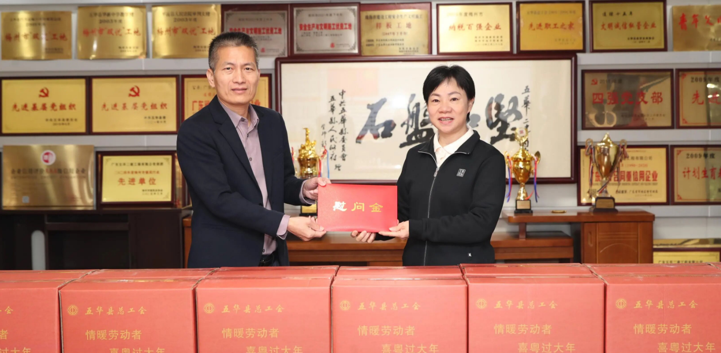 在广东五华二建工程有限公司,钟秀堂为企业和困难职工送上慰问品、慰问金,仔细了解企业的实际困难和需求。她强调,建筑业是五华税收的重要支柱产业,相关部门要强化服务意识,主动对接企业,做好政策支持和服务保障,助力企业深耕本土,推动企业稳健发展,共同营造关心关爱职工、支持本土企业发展的良好氛围。